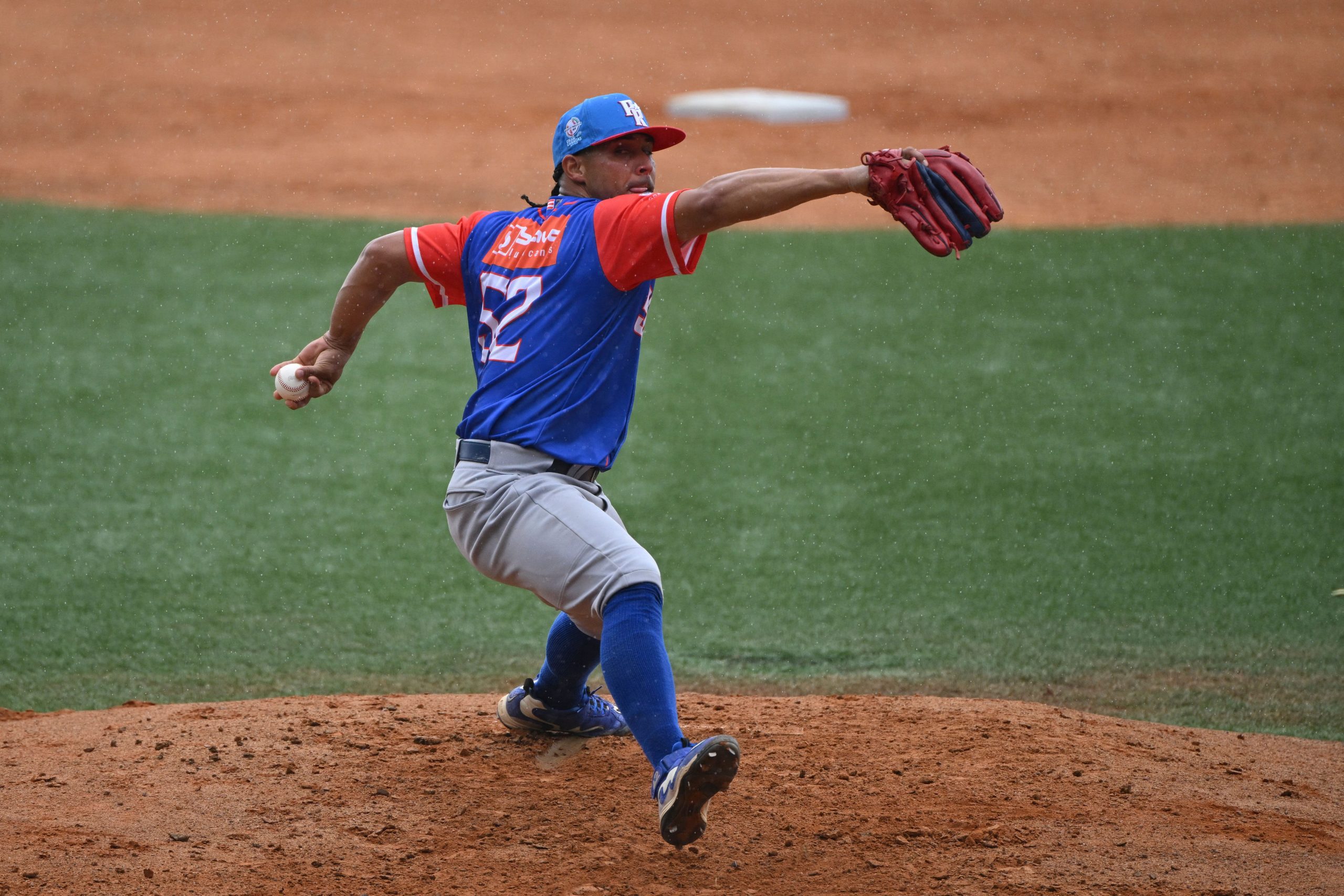 Photo Credit: Pitcher of Puerto Rico’s Indios de Mayaguez, Luis Leroy Cruz, throws the ball. (Photo by Federico PARRA / AFP) (Photo by FEDERICO PARRA/AFP via Getty Images)