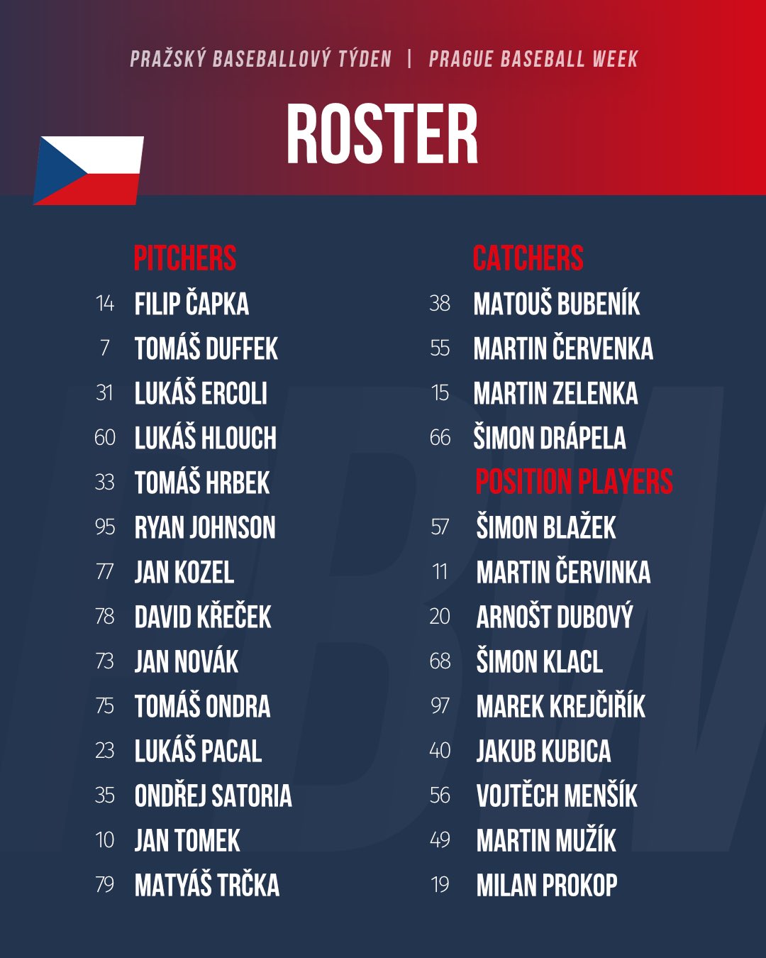 Another key contributor is Martin Mužík, a catcher/infielder who made history at the 2023 WBC with the only go-ahead 9th-inning homer ever hit in a trailing situation. He ranks third in Extraliga OPS (1.251) with 7 HR and is expected to provide protection for Červenka in the lineup.