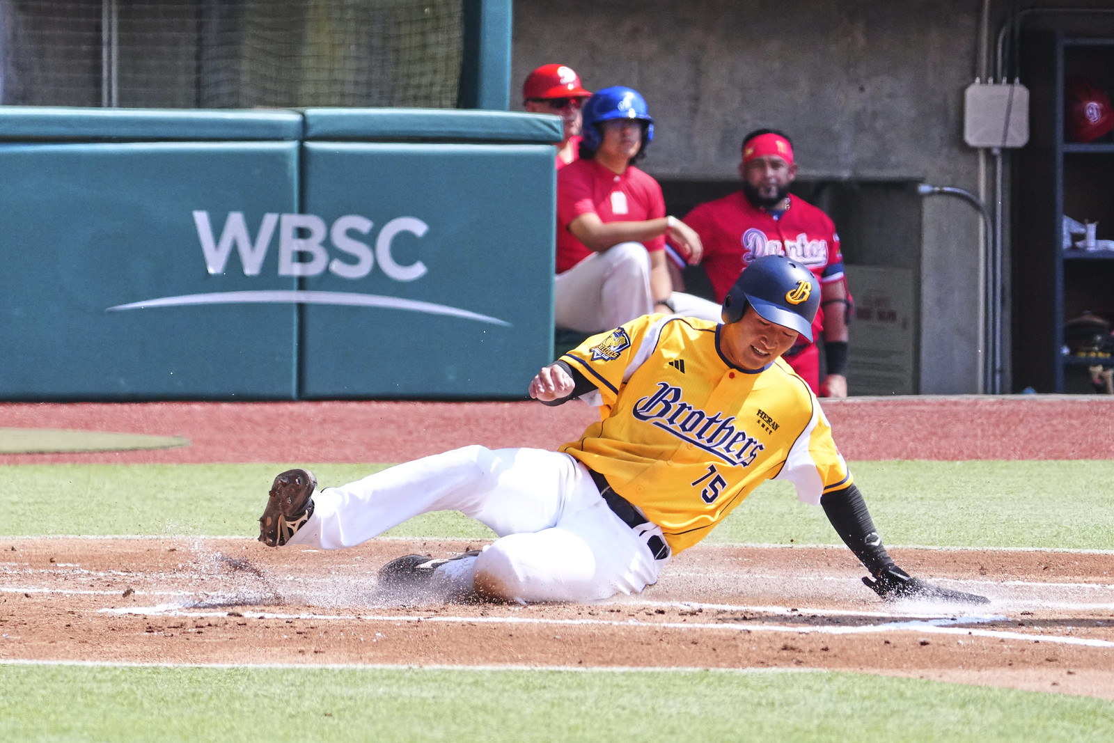 Photo: Lin Jui-Chun of the CTBC Brothers slides home during the 2026 Baseball Champions League. (Photo courtesy of the WBSC)
