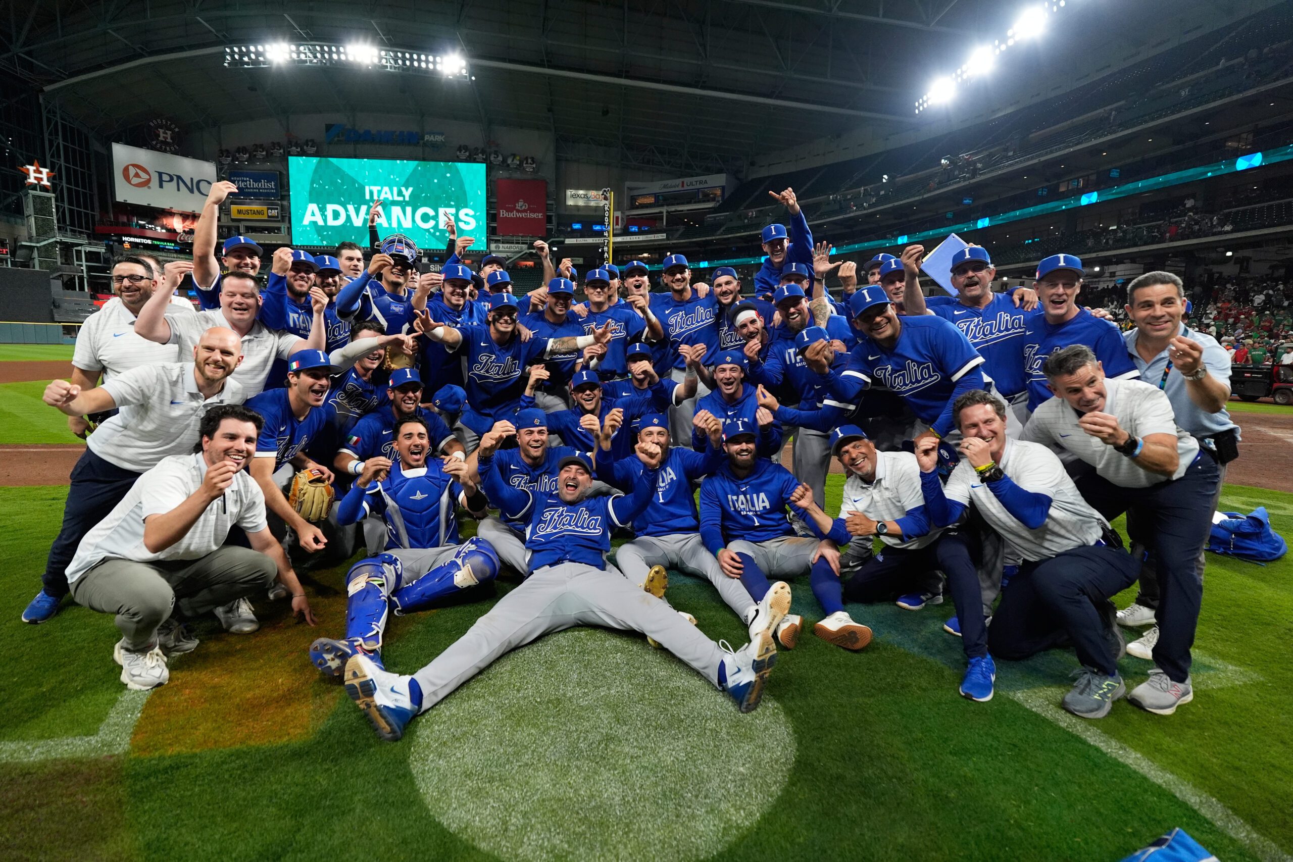 Photo: Team Italy celebrates after winning a World Baseball Classic game against Mexico, Wednesday, March 11, 2026, in Houston. (AP Photo/Ashley Landis)