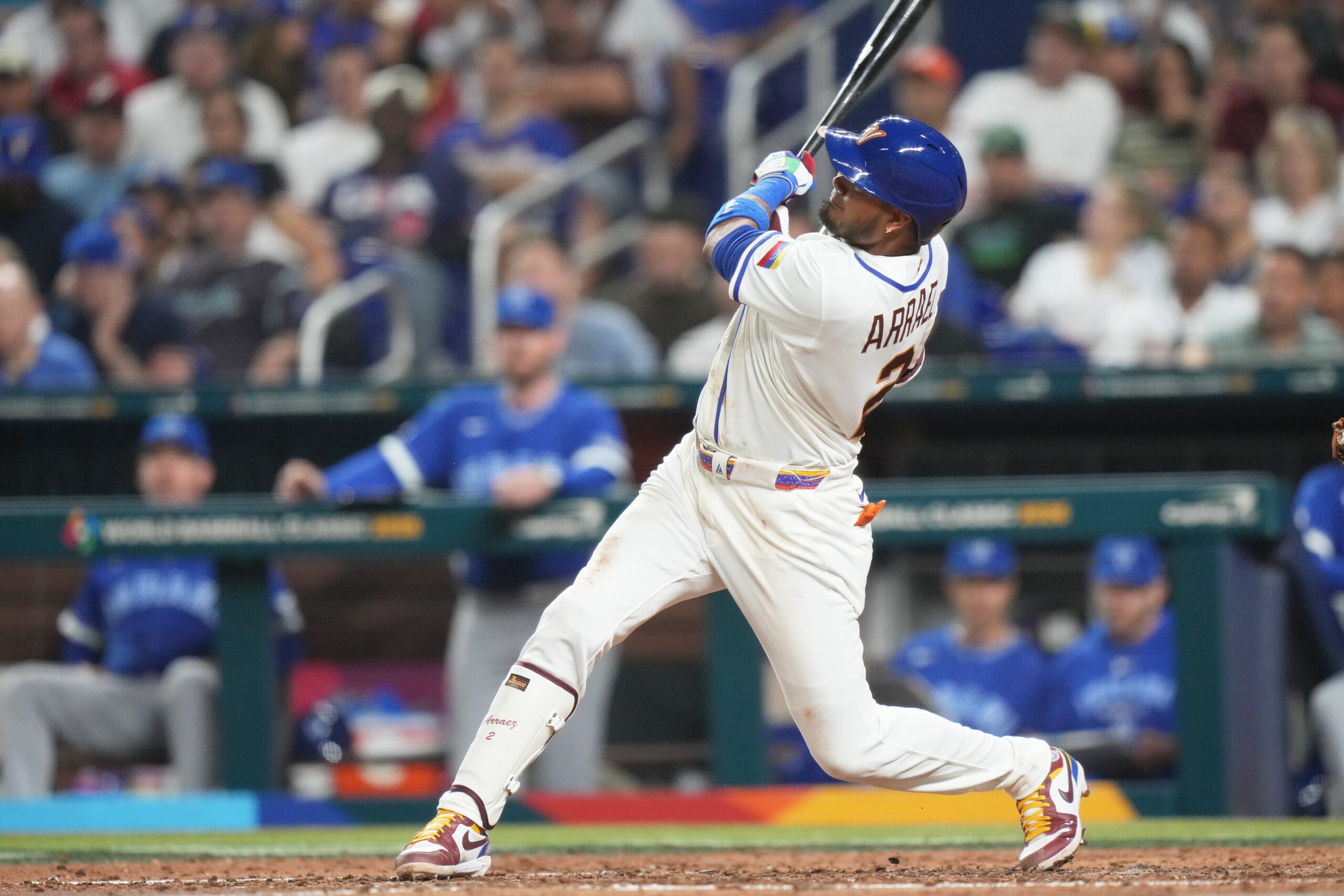 Photo: Luis Arraez hits a solo home run during the fifth inning of a World Baseball Classic game against Israel, Saturday, March 7, 2026, in Miami. (AP Photo/Lynne Sladky)