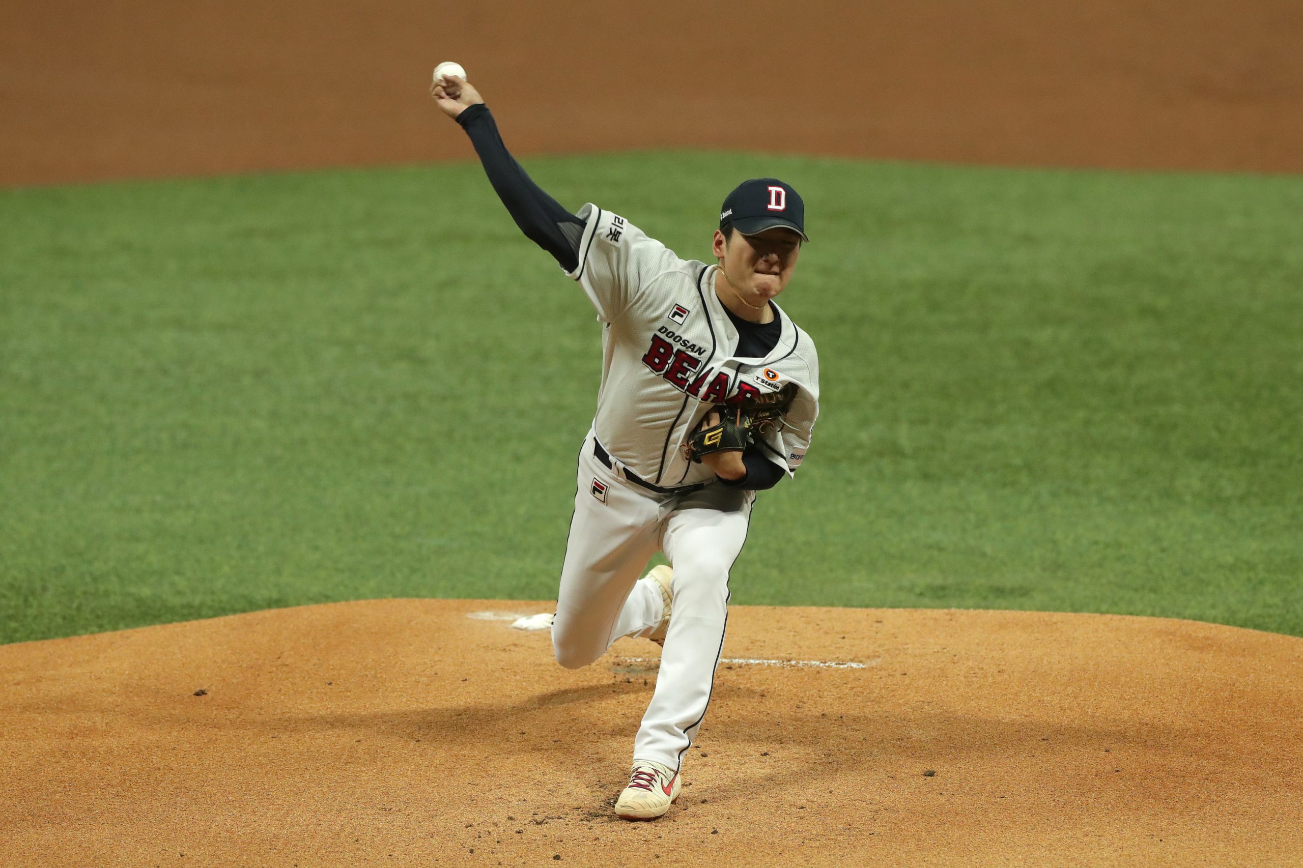 Photo Credit: Pitcher Gwak Been #47 of Doosan Bears throws in the top of the first inning. (Photo by Han Myung-Gu/Getty Images)