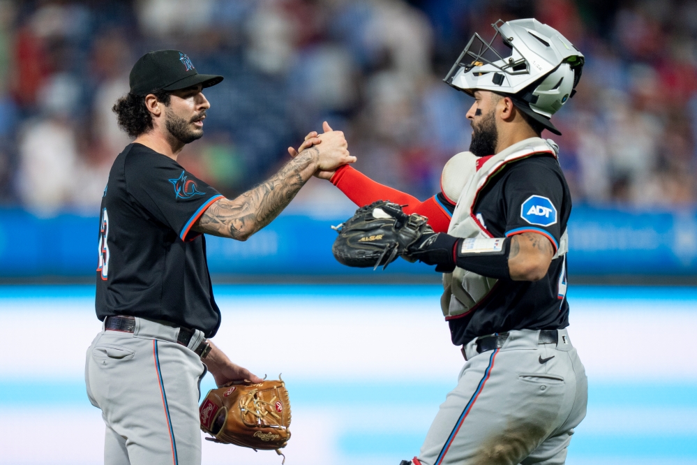 PHILADELPHIA (AP) — Jake Burger homered for the fourth straight game, Valente Bellozo gave up four hits in seven innings and the 75-loss Miami Marlins kept the Philadelphia Phillies in a summer swoon that has cost them the best record in baseball with a 5-0 victory on Tuesday night.