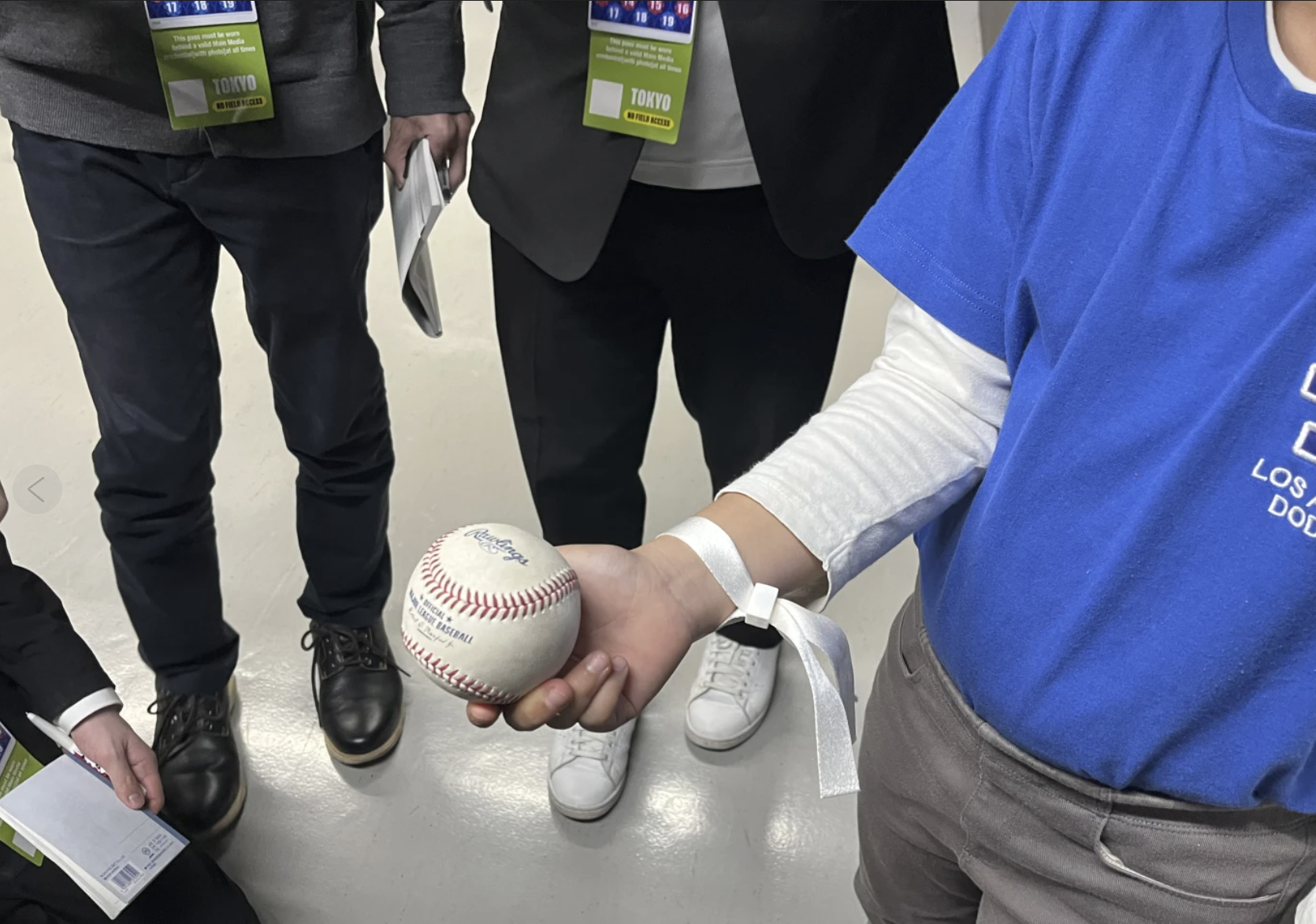 Sota is from Saitama, located just north of greater Tokyo. He wore a blue Dodgers shirt and a baseball mitt on his right hand, and he pulled the keepsake ball out of small backpack to show it off.