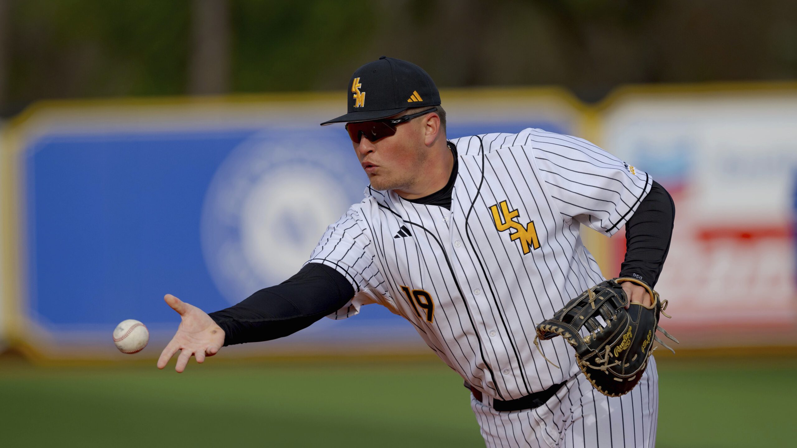 PHOTO: Southern Mississippi infielder Matthew Russo (19) throws during an NCAA baseball game against Louisiana Tech on Friday, Feb. 21, 2025, in Hattiesburg, Miss. (AP Photo/Matthew Hinton)
