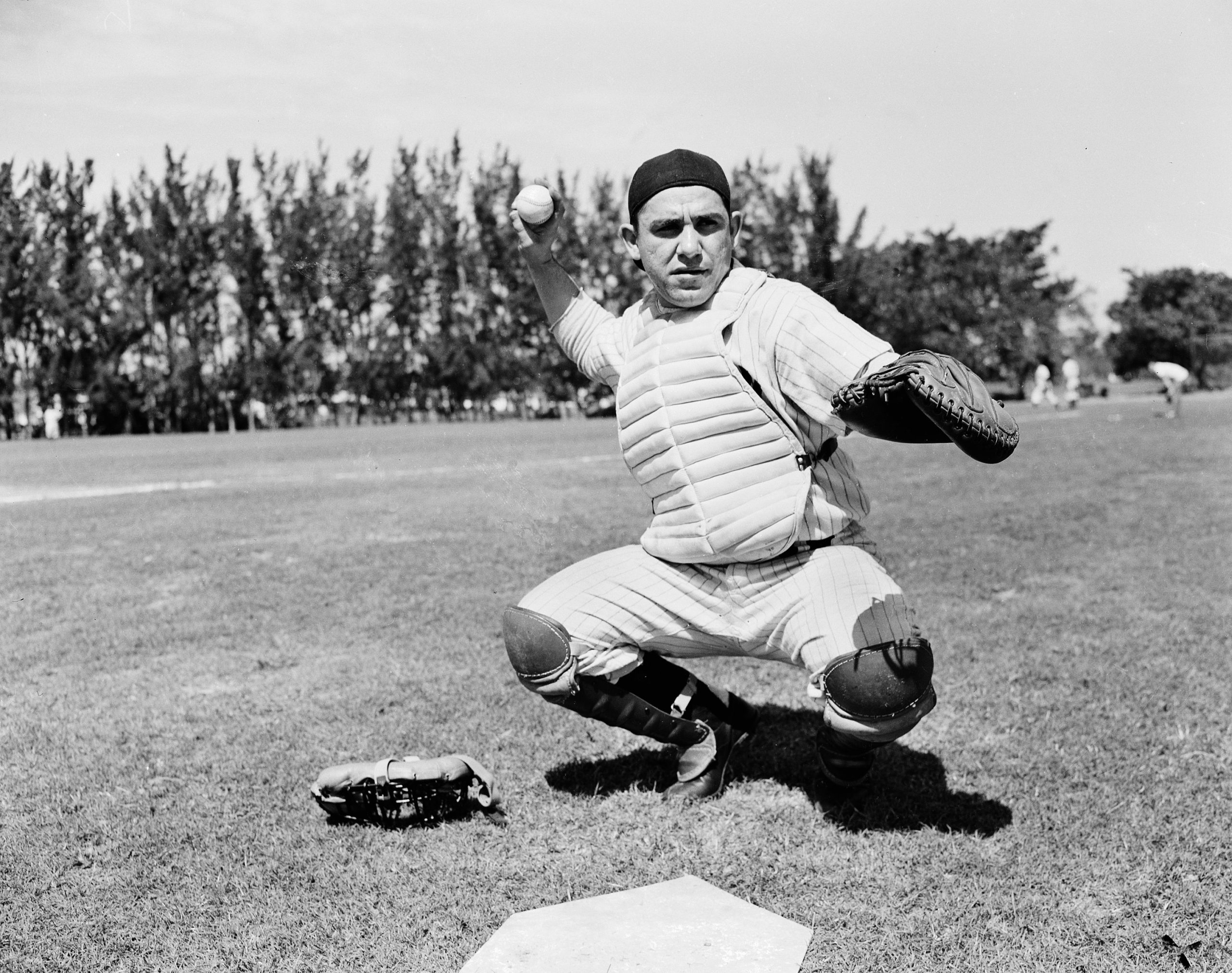 Photo: Lawrence Peter “Yogi” Berra, catcher for the New York Yankees, is shown in an action pose on March 24, 1949 during spring training. The catcher-infielder batted .305 in 1948. The location is not known. (AP Photo)