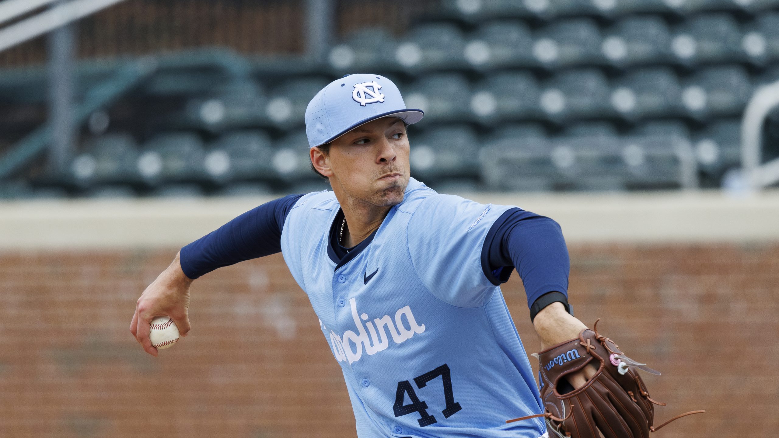 Photo Credit: North Carolina’s Aidan Haugh (47) pitches during an NCAA baseball game on Wednesday, Feb. 28, 2024, in Chapel Hill, N.C. (AP Photo/Ben McKeown)