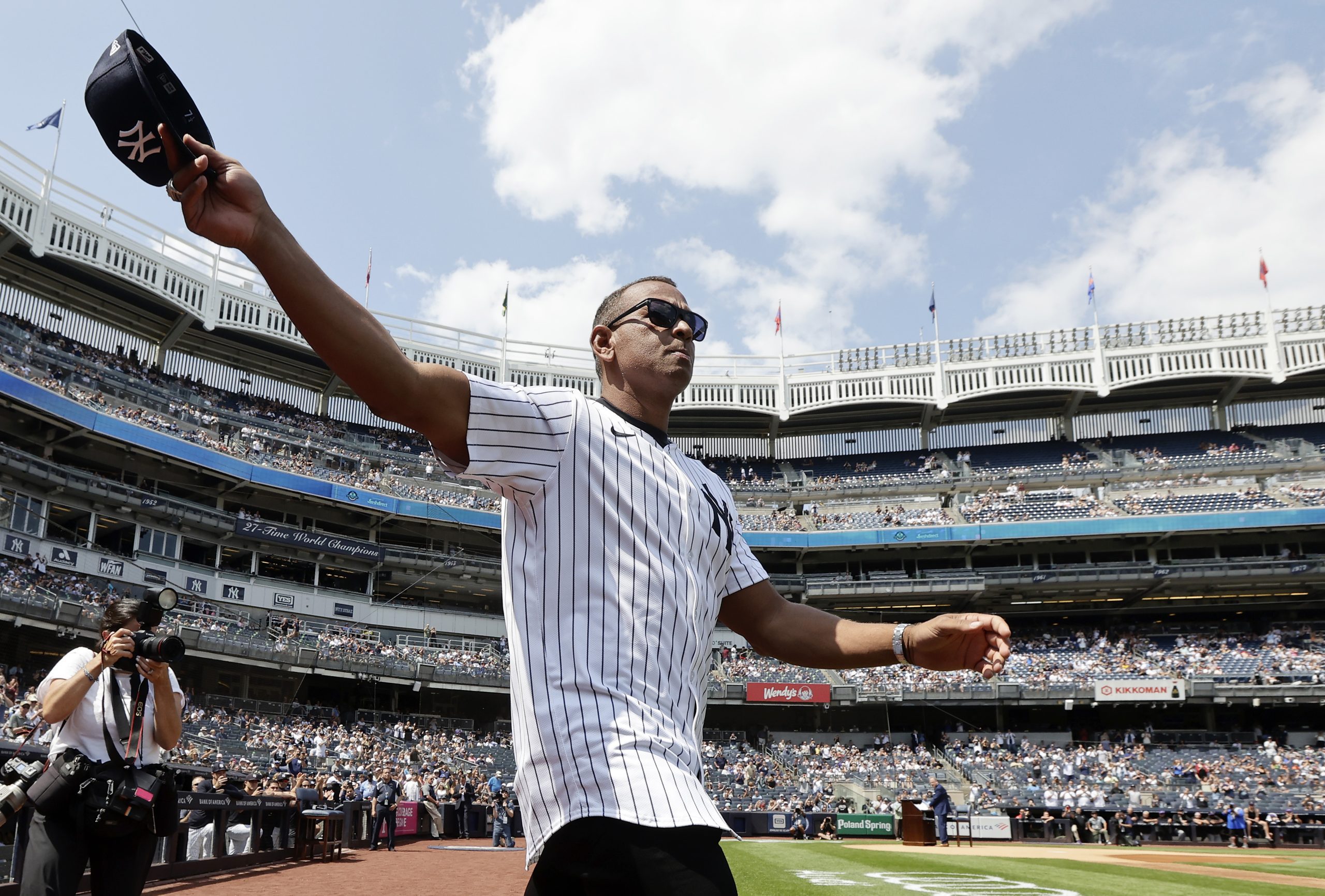 Photo Credit: Former New York Yankee Alex Rodriguez is introduced during the teams Old Timer’s Day prior to a game against the Colorado Rockies at Yankee Stadium on August 24, 2024 in New York City. (Photo by Jim McIsaac/Getty Images)