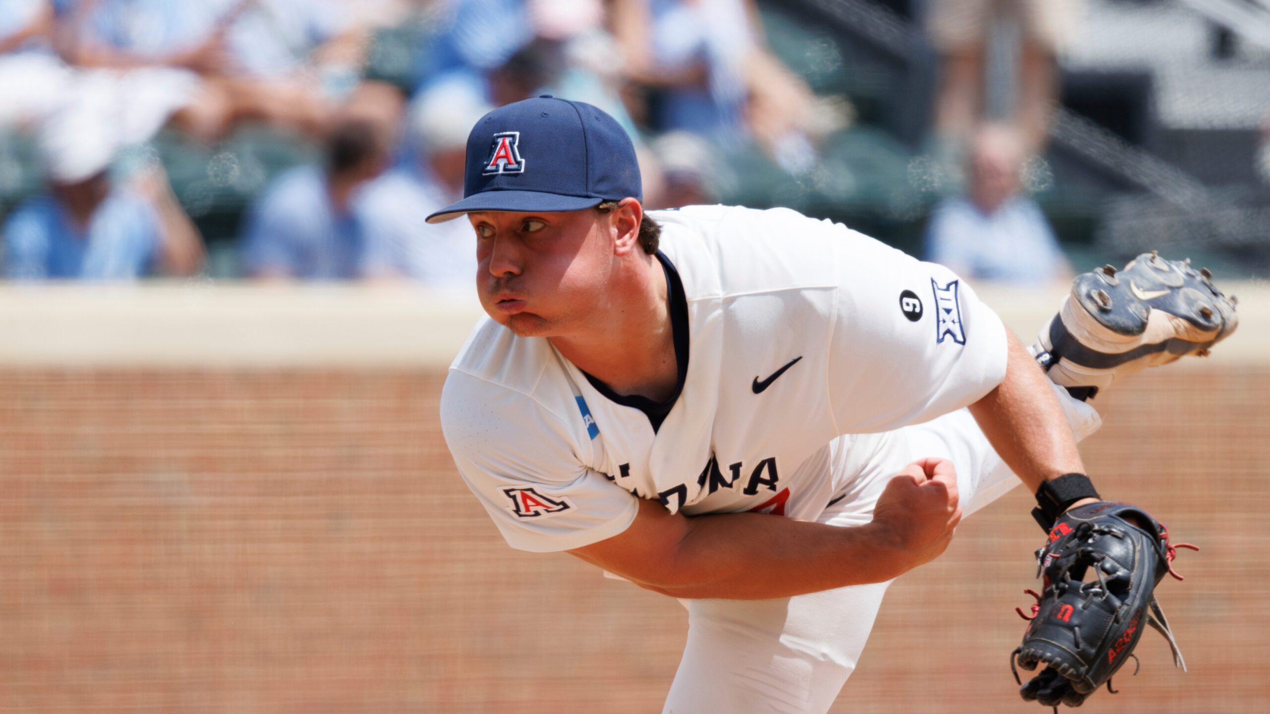 PHOTO: Arizona’s Tony Pluta (37) pitches during an NCAA super regional baseball game on Saturday, June 7, 2025, in Chapel Hill, N.C. (AP Photo/Ben McKeown)