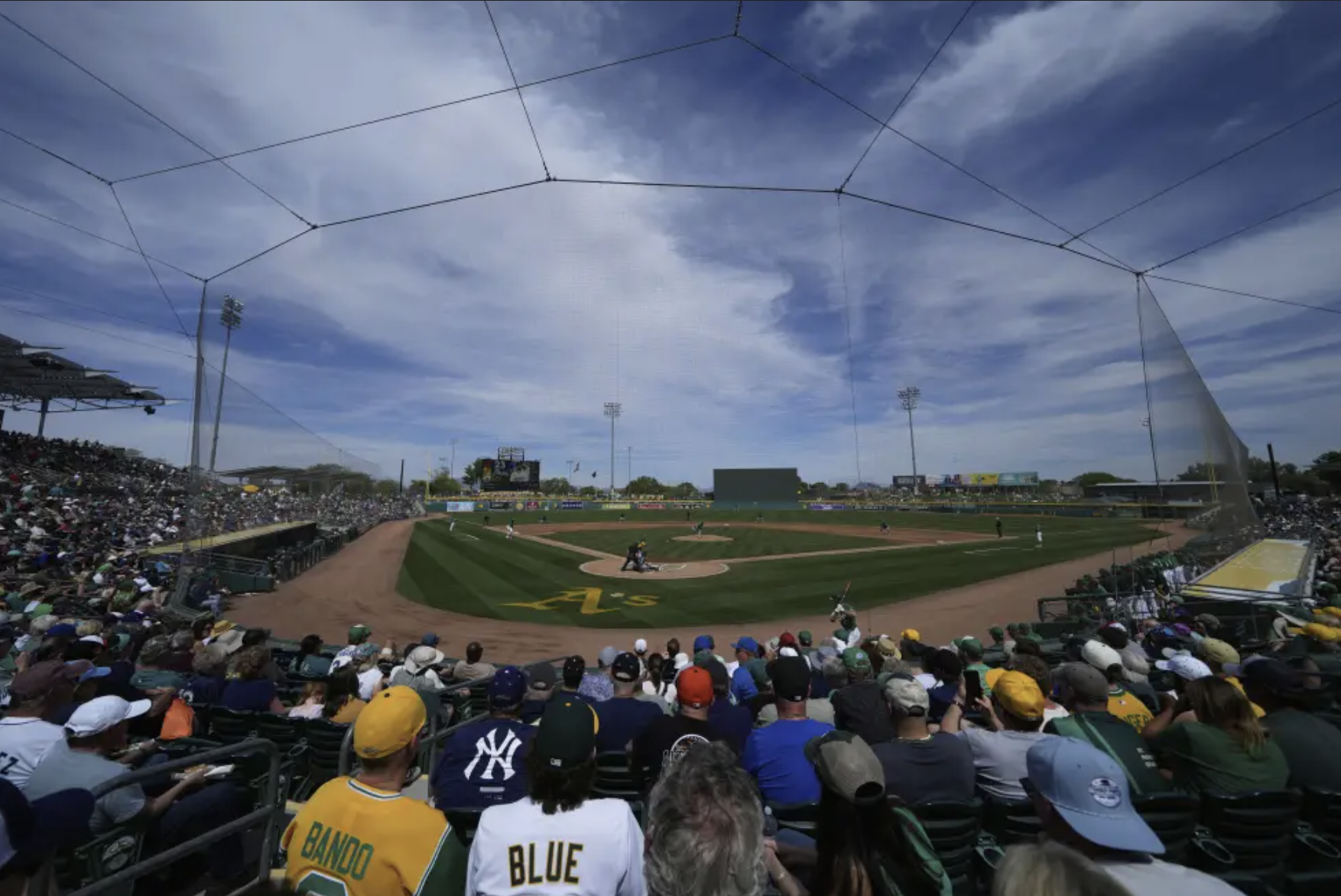 Photo: The A’s and Seattle Mariners played a spring training game in Mesa, Ariz. on March 17, 2025. (AP Photo/Matt York)