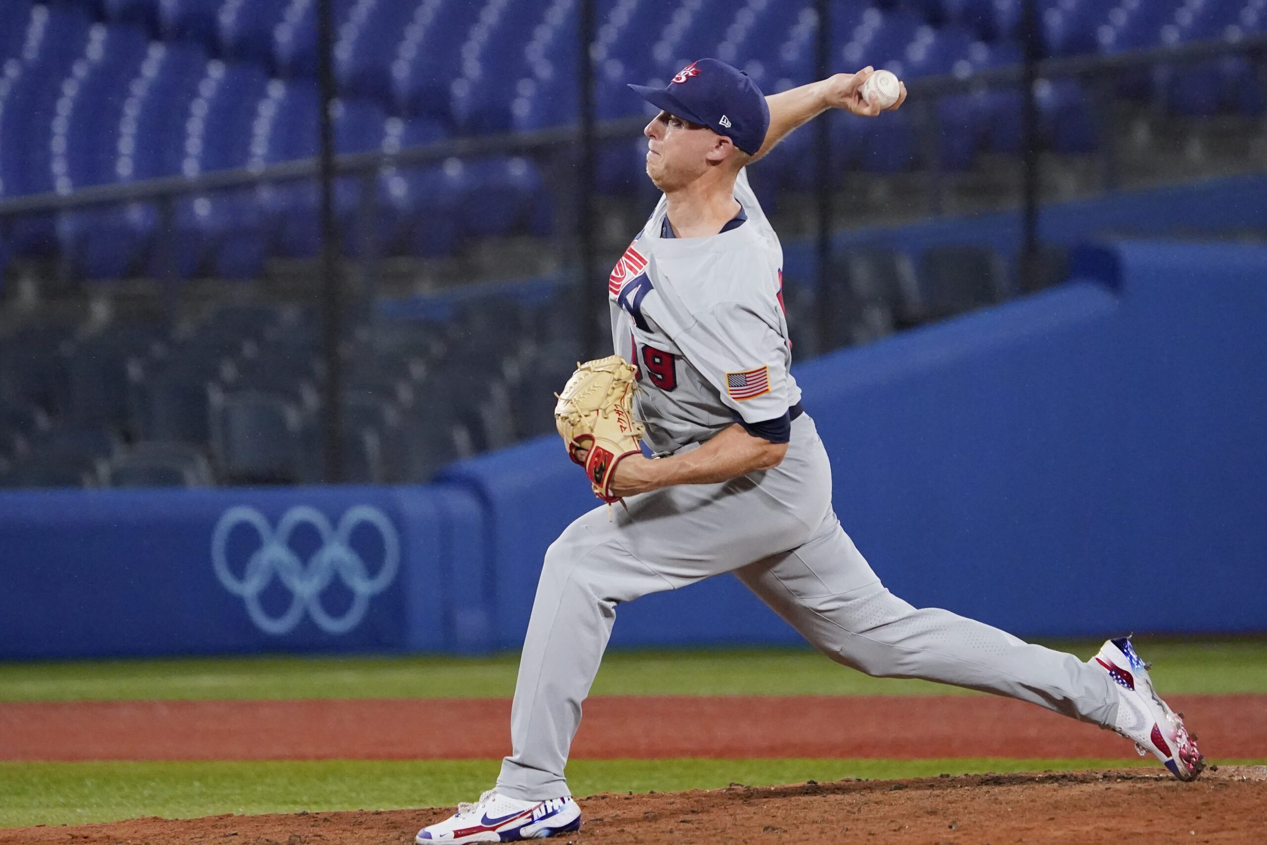 Photo: United States’ Scott Mcgough pitches during the ninth inning of a baseball game against Japan at the 2020 Summer Olympics, Monday, Aug. 2, 2021, in Yokohama, Japan. (AP Photo/Sue Ogrocki)