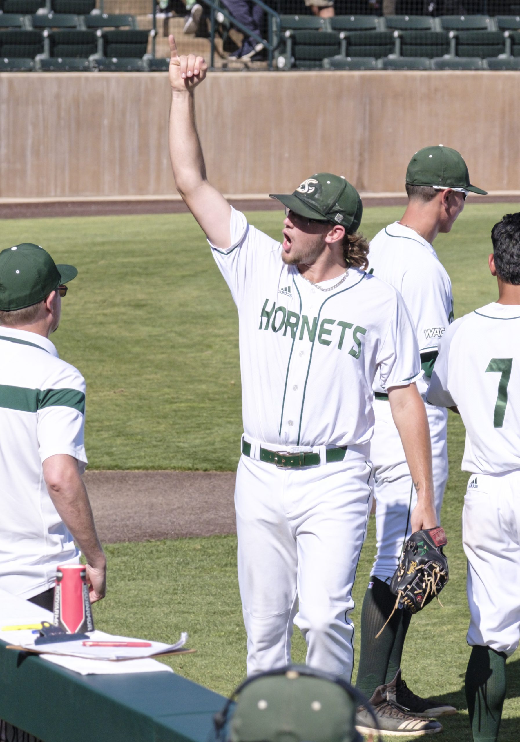 Photo Credit: Sacramento State closing pitcher Austin Roberts (17) gives the Hornet’s stinger sign to fans after the Regional Champion game. (Photo by Douglas Stringer/Icon Sportswire via Getty Images)