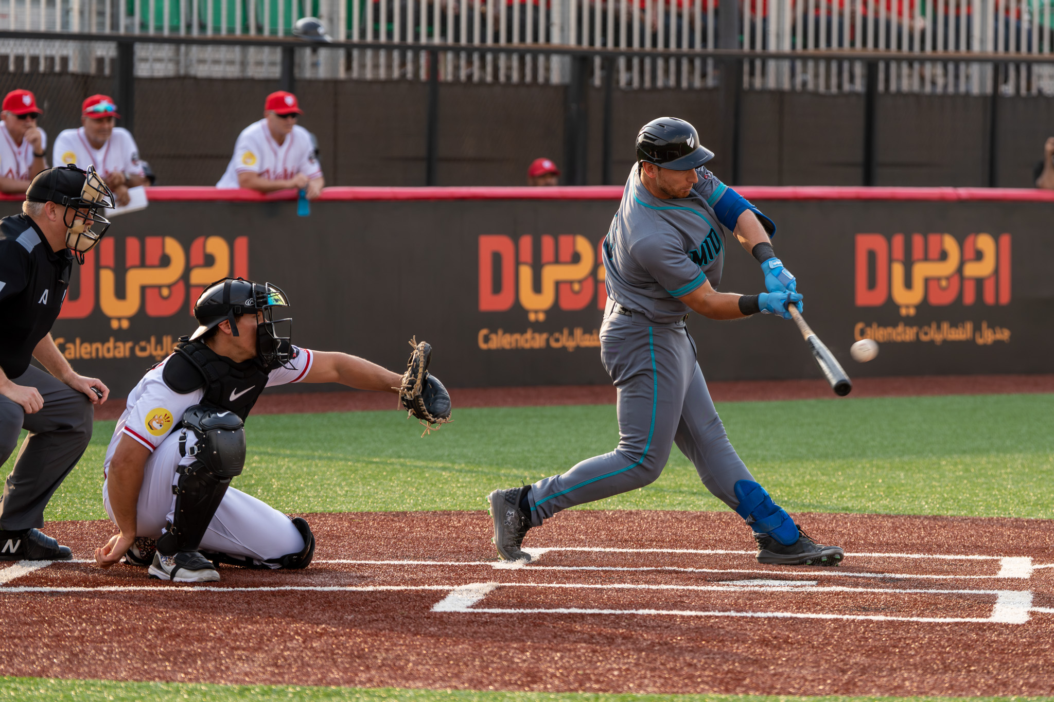 Photo: Federico Celli hit the first eight-run homer, smashing a Money Ball out of the park in the Mid East Falcons 9-5 win over the Arabia Wolves, helping his team punch their ticket to the United Series. (Photo courtesy of Baseball United)