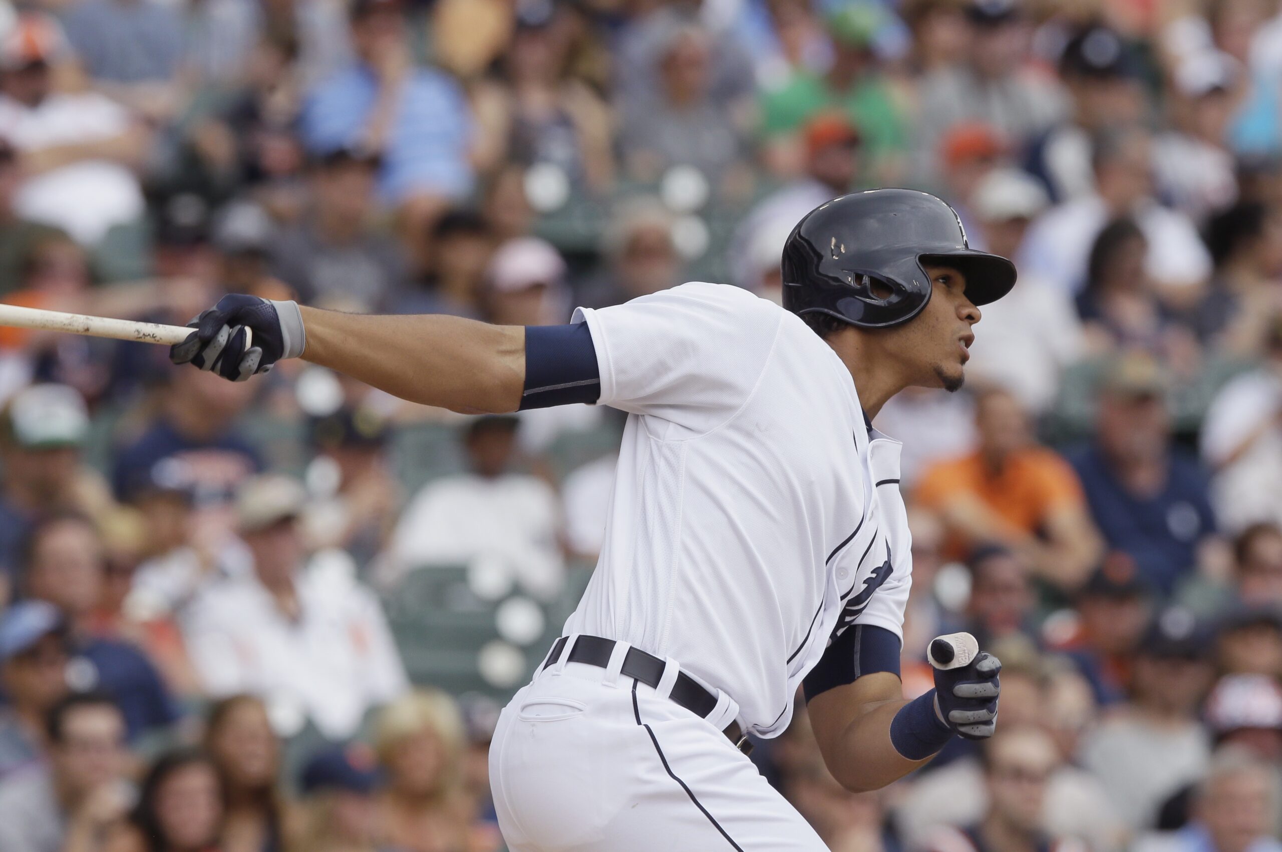 Photo: Steven Moya follows through on his RBI double to centerfield during the second inning of a baseball game against the Seattle Mariners, Thursday, June 23, 2016 in Detroit. (AP Photo/Carlos Osorio)