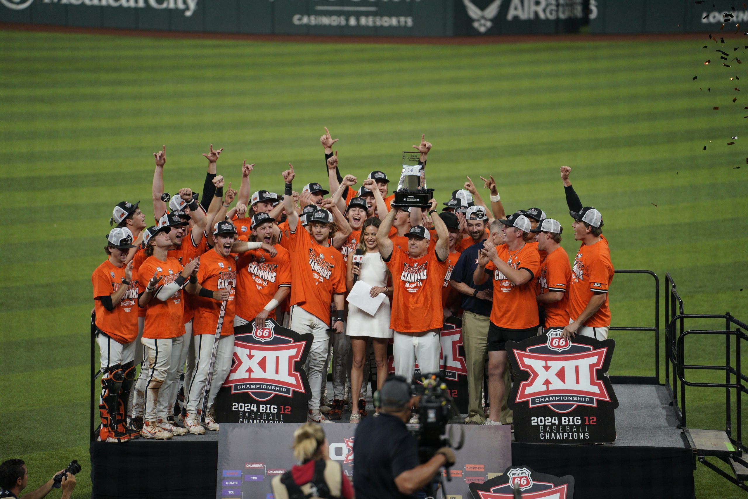 Arlington, Texas – The No. 19 ranked program Oklahoma State University Cowboys won the 2024 Big 12 Conference tournament championship on Saturday night and crushed their in-state rival, the No. 8 ranked team in the country, the University of Oklahoma Sooners, 9-3, to capture their fourth conference championship title since the program.