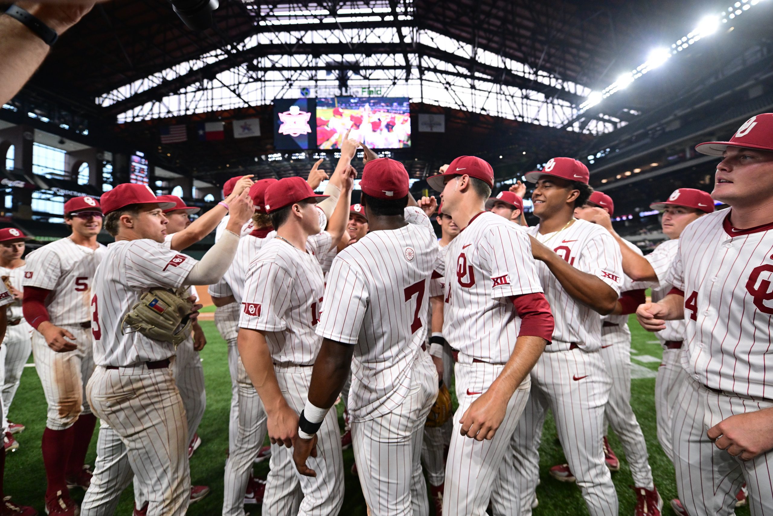 Oklahoma will play the No. 7 seed Kansas on May 23 at Globe Life Field at 1:30 p.m. EST on Big 12 Now on ESPN+.