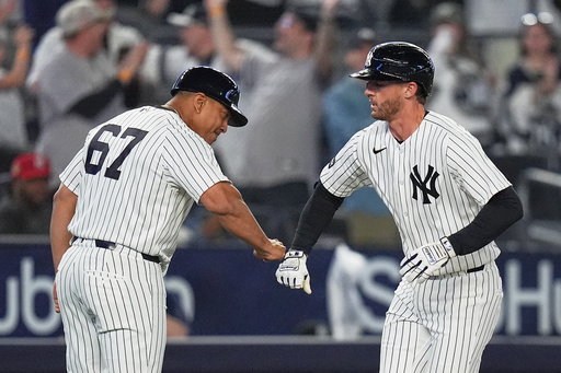 The score was tied 2-all when Ben Rice singled off Kansas City reliever Alex Lange with two outs in the eighth. McMahon, who entered at third in the top of the inning, lofted a 2-1 changeup 372 feet the other way to left field, and the ball appeared to get a push from the wind as it cleared the fence.