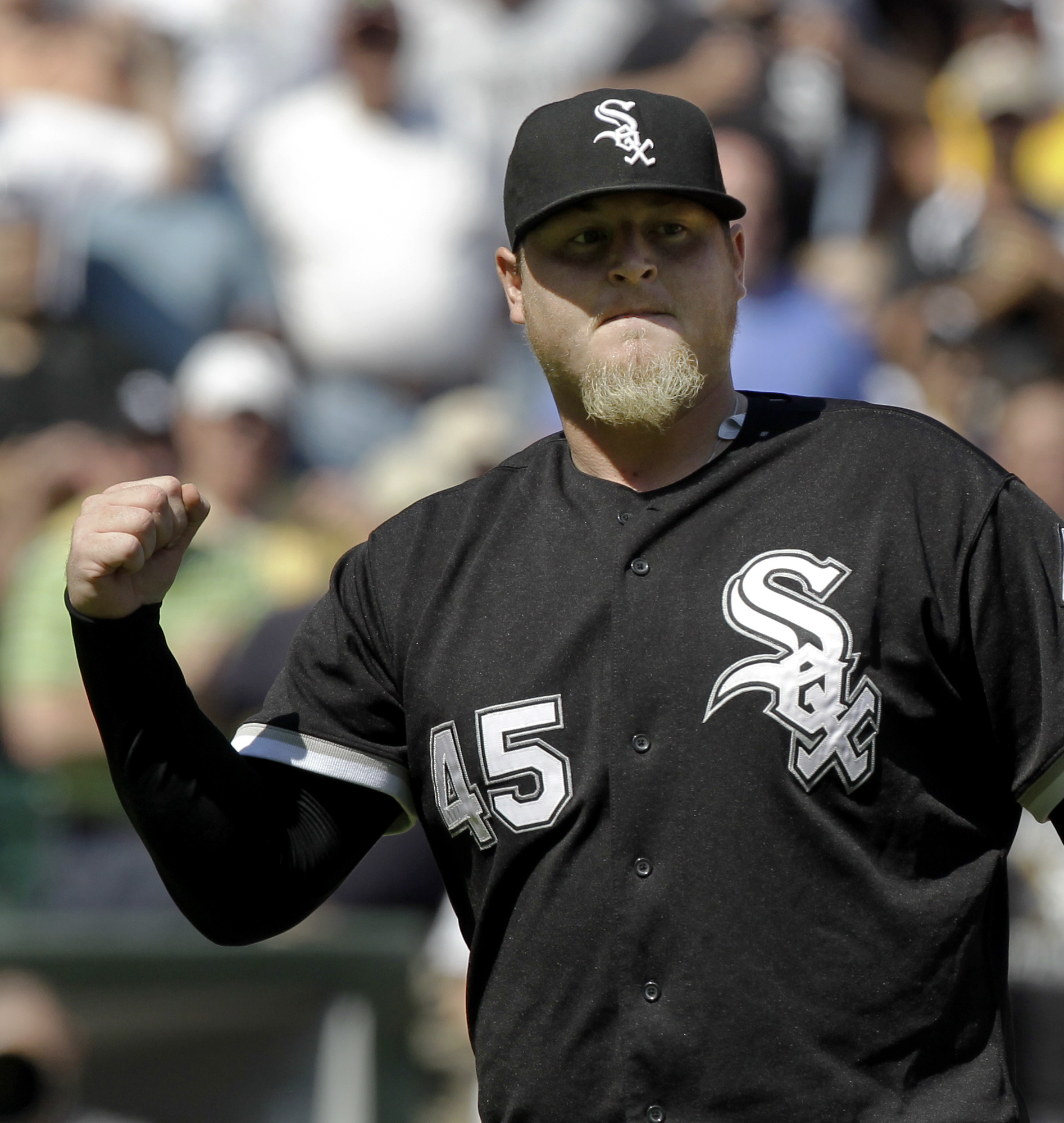 Photo: Chicago White Sox relief pitcher Bobby Jenks pumps his fist after the last out of their 2-0 win over the Atlanta Braves in an interleague baseball game, Thursday, June 24, 2010 in Chicago. (AP Photo/Charles Rex Arbogast)