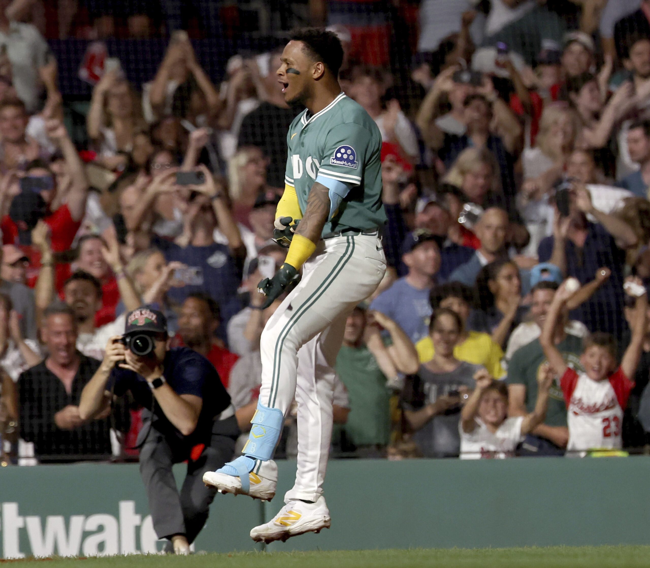Photo: Boston Red Sox’s Ceddanne Rafaela reacts after hitting a two-run walkoff home run during the ninth inning of a baseball game against the Tampa Bay Rays, Friday, July 11, 2025, in Boston. (AP Photo/Mark Stockwell)