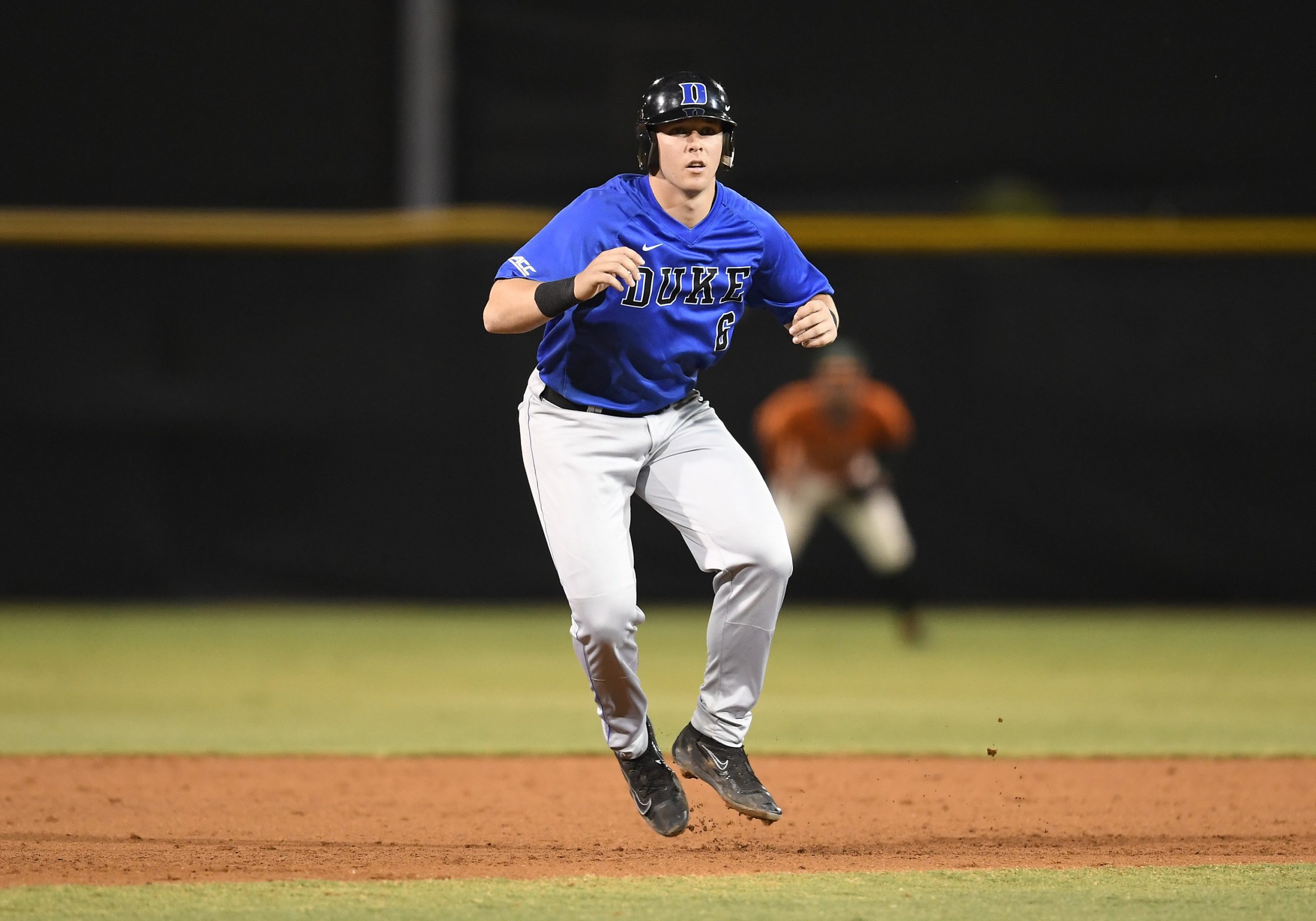 Photo Credit: Duke infielder/right handed pitcher Jack Labosky (6) takes a lead during a college baseball game between the Duke University Blue Devils and the University of Miami Hurricanes on April 8, 2017. (Photo by Richard C. Lewis/Icon Sportswire via Getty Images)