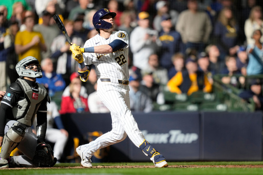 MILWAUKEE (AP) — Christian Yelich hit a off Seranthony Domínguez to cap a six-run rally in the eighth inning as the Milwaukee Brewers completed a season-opening sweep by beating the Chicago White Sox 9-7 on Sunday.