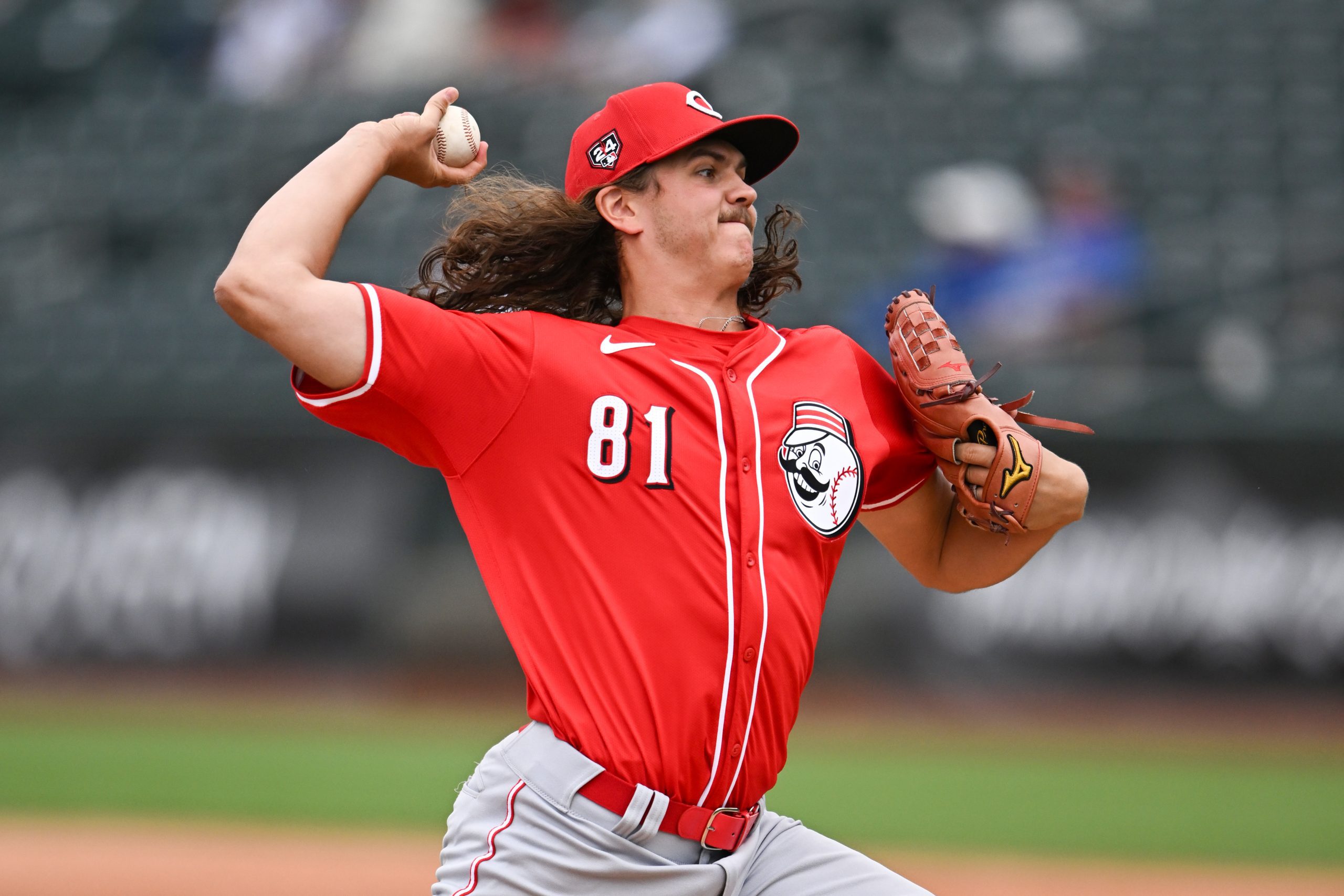 Photo Credit: Rhett Lowder #81 of the Cincinnati Reds throws a pitch. (Photo by Chris Bernacchi/Diamond Images via Getty Images)