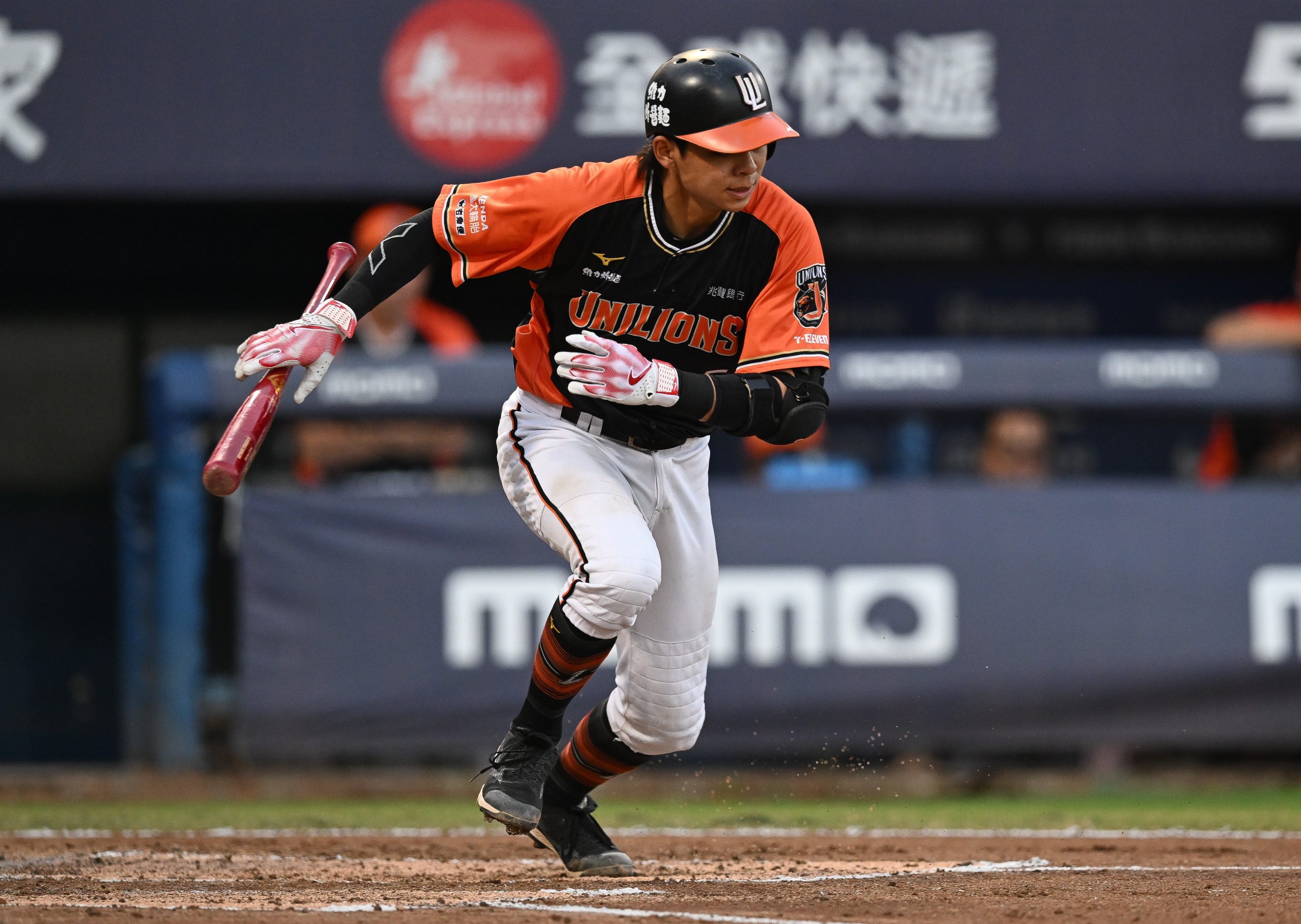 Photo Credit: Chung Yu Chen #65 of Uni-Lions bunts a single in the top of the second inning during the CPBL game. (Photo by Gene Wang/Getty Images)