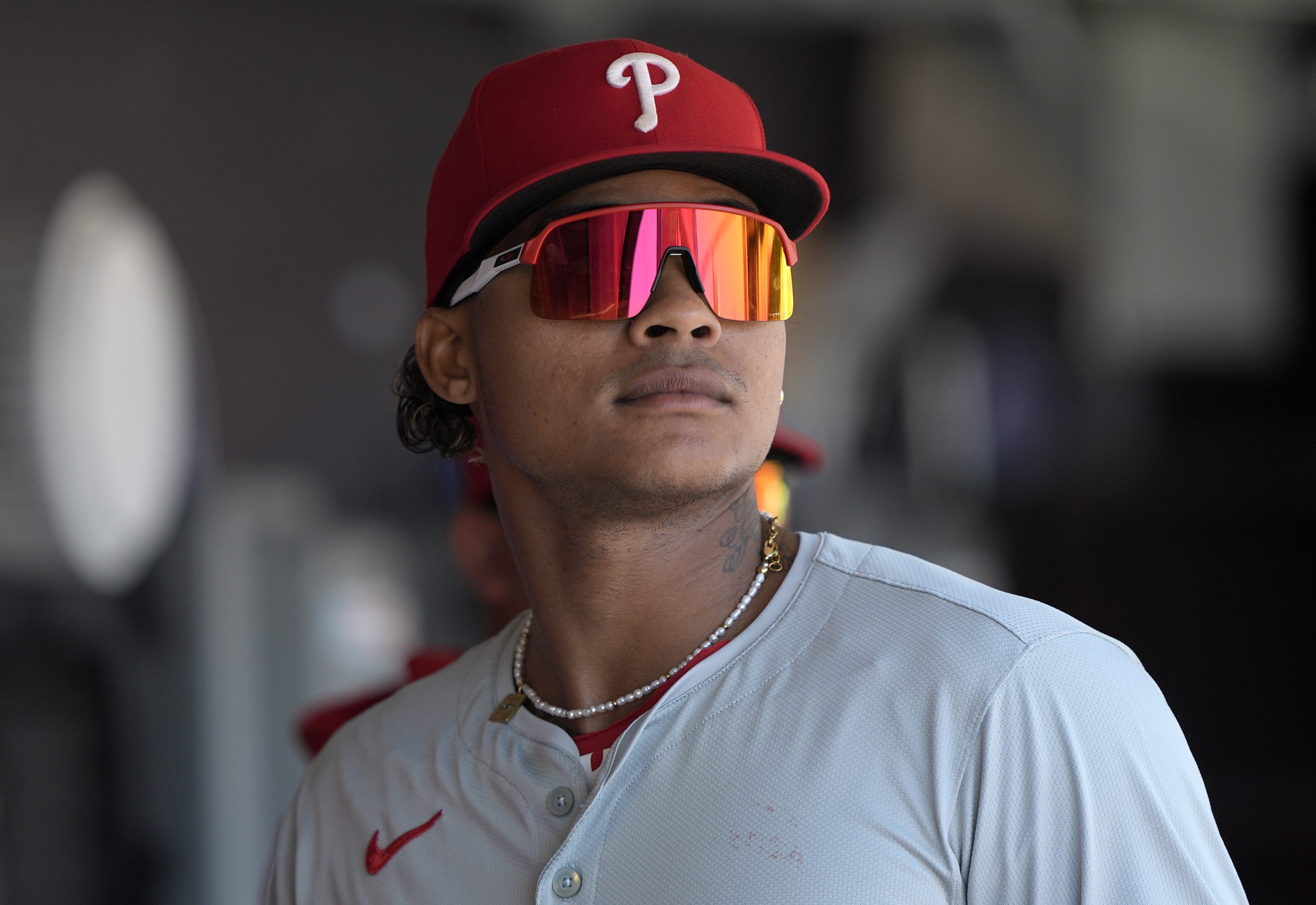Photo Credit: Cristian Pache #19 of the Philadelphia Phillies looks on from the dugout prior to the start of the game against the San Francisco Giants at Oracle Park on May 29, 2024 in San Francisco, California. (Photo by Thearon W. Henderson/Getty Images)