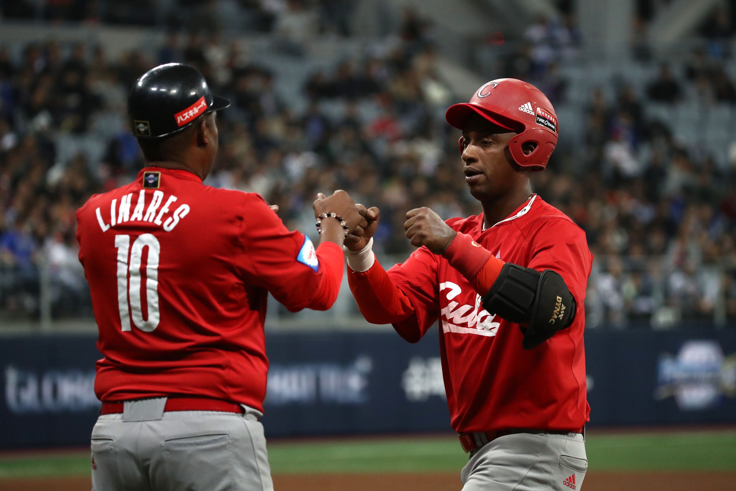 Photo Credit: Infielder Alexander Ayala #4 of Cuba reacts after hits a single in the top of fourth inning during the WBSC Premier 12 Opening Round Group C game between South Korea and Cuba at the Gocheok Sky Dome on November 08, 2019 in Seoul, South Korea. (Photo by Chung Sung-Jun/Getty Images)