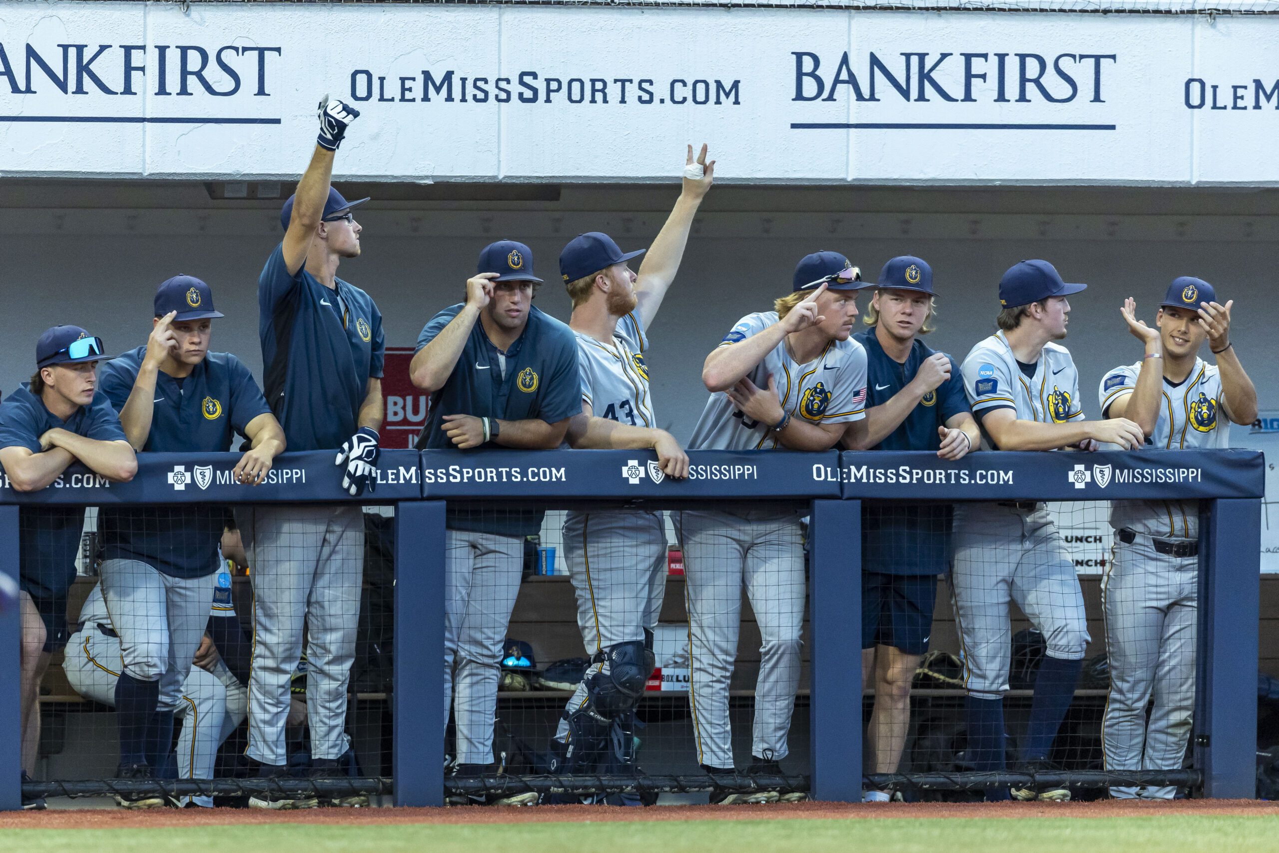 Photo: Murray State’s dugout cheers during an NCAA regional baseball game against Mississippi on Friday, May 30, 2025, Oxford, Miss. (AP Photo/Vasha Hunt)
