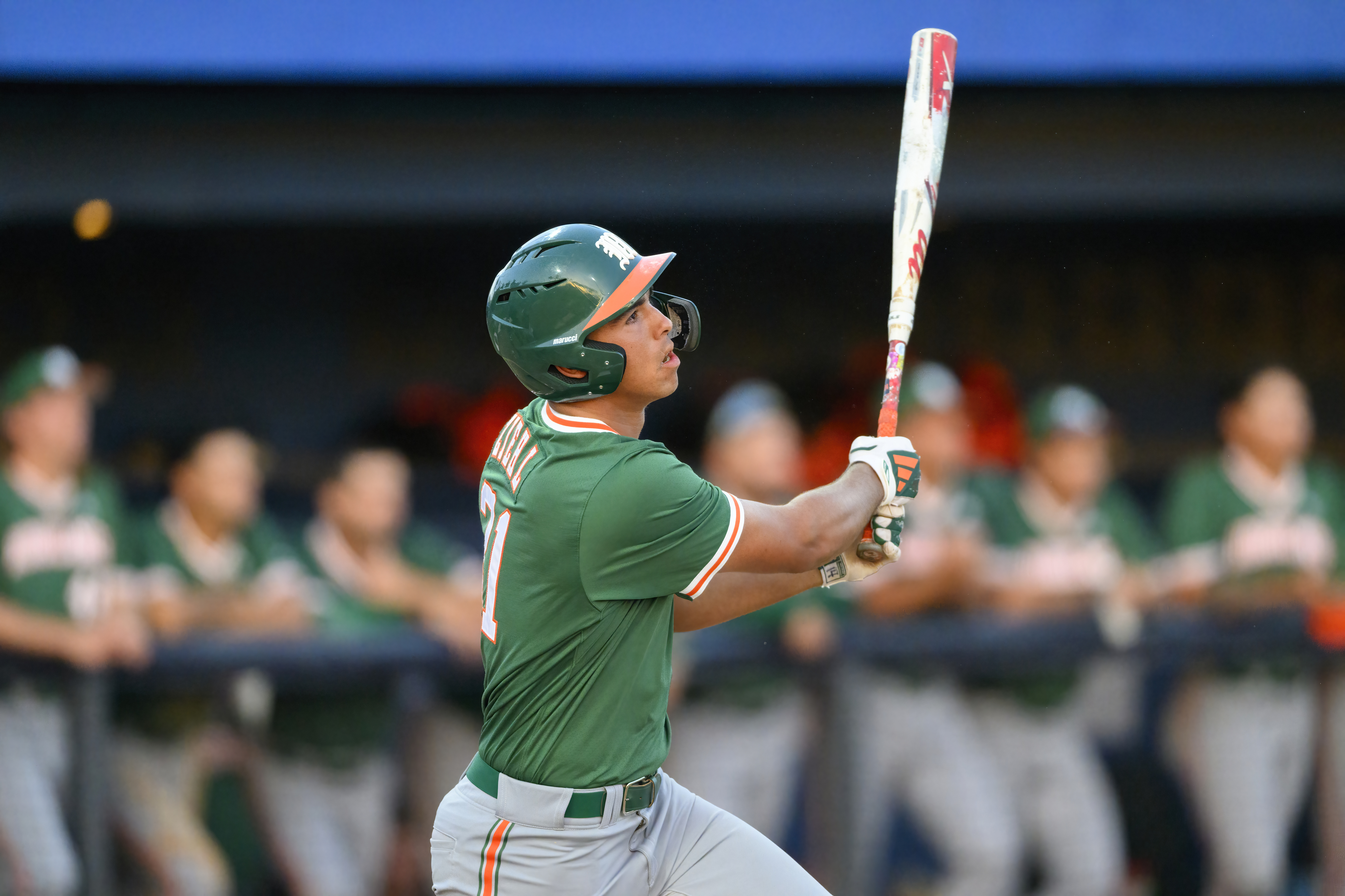 In 2024, he set Miami’s single-season record for home runs by a freshman with 24. That same season, he led all freshmen in the country in RBI with 75.