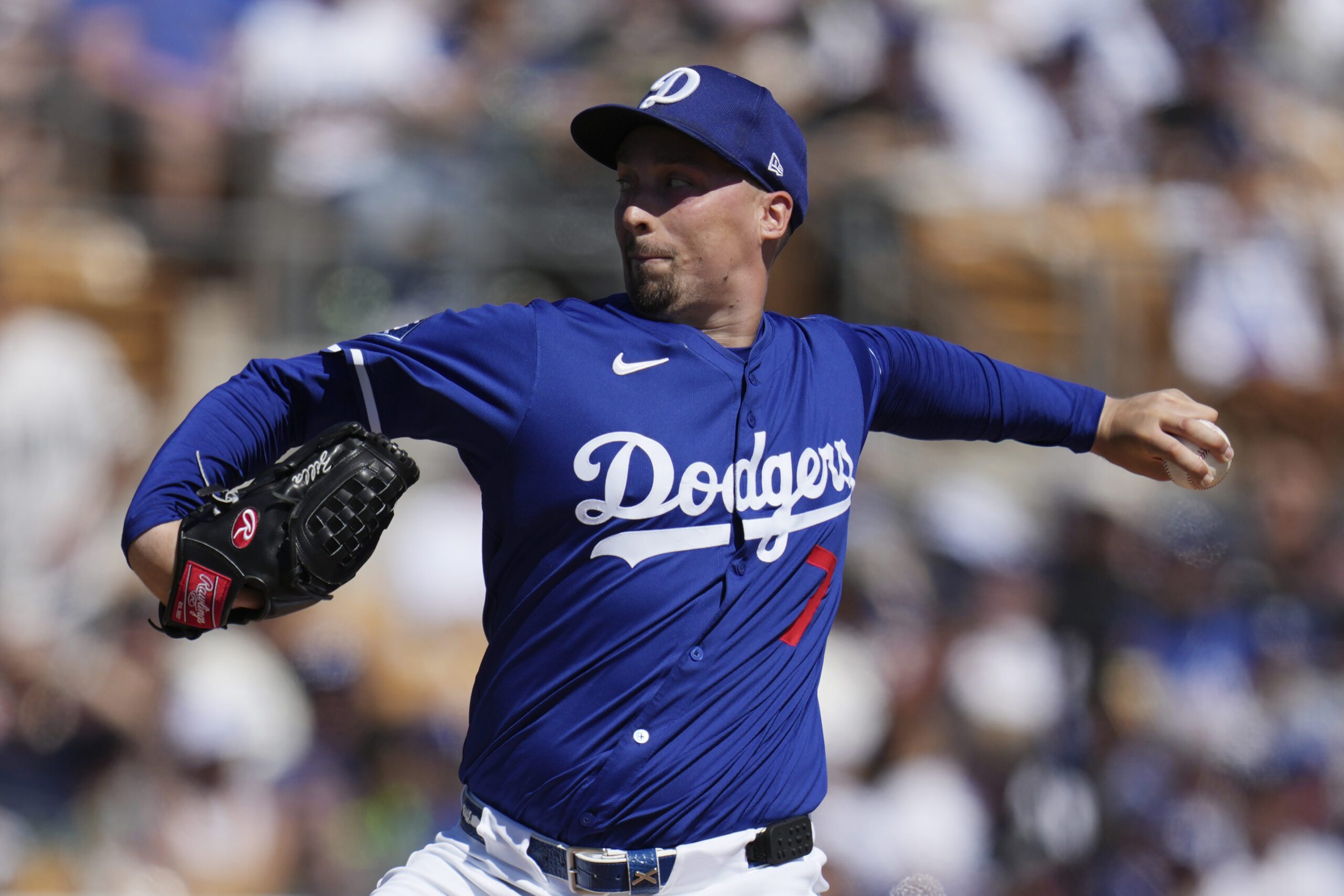 Photo: Los Angeles Dodgers starting pitcher Blake Snell throws against the Athletics during the second inning of a spring training baseball game Sunday, March 9, 2025, in Phoenix. (AP Photo/Ross D. Franklin)