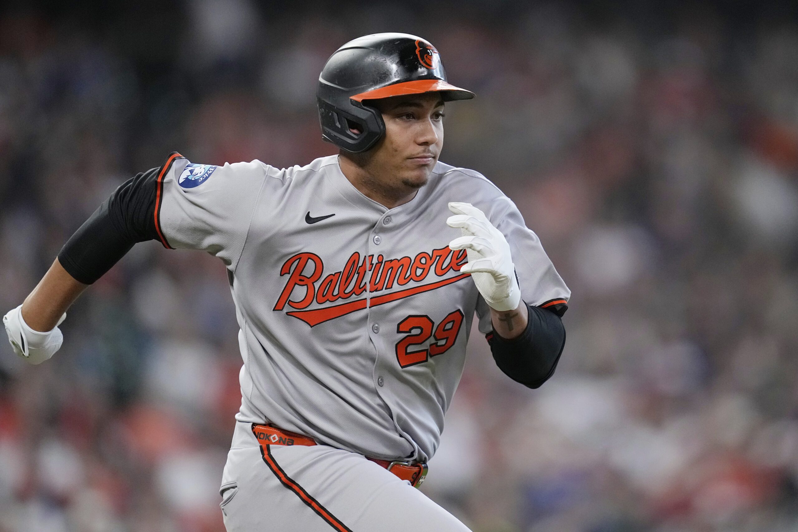 Photo: Samuel Basallo runs up the first base line after hitting into a double play against the Houston Astros during the fourth inning of a baseball game Sunday, Aug. 17, 2025, in Houston. (AP Photo/David J. Phillip)