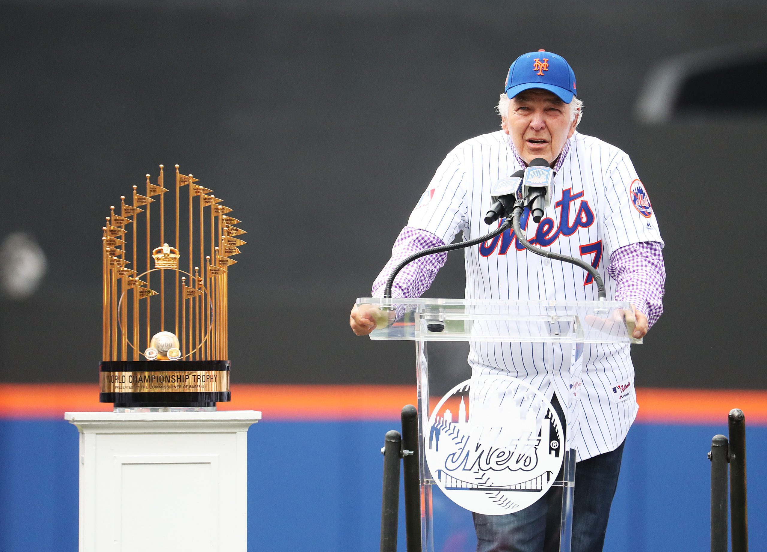 Photo Credit: Former New York Met Ed Kranepool speaks to the crowd during the 50th Anniversary of the Mets winning the World Series in 1969 at Citi Field on June 29, 2019 in New York City. (Photo by Al Bello/Getty Images)