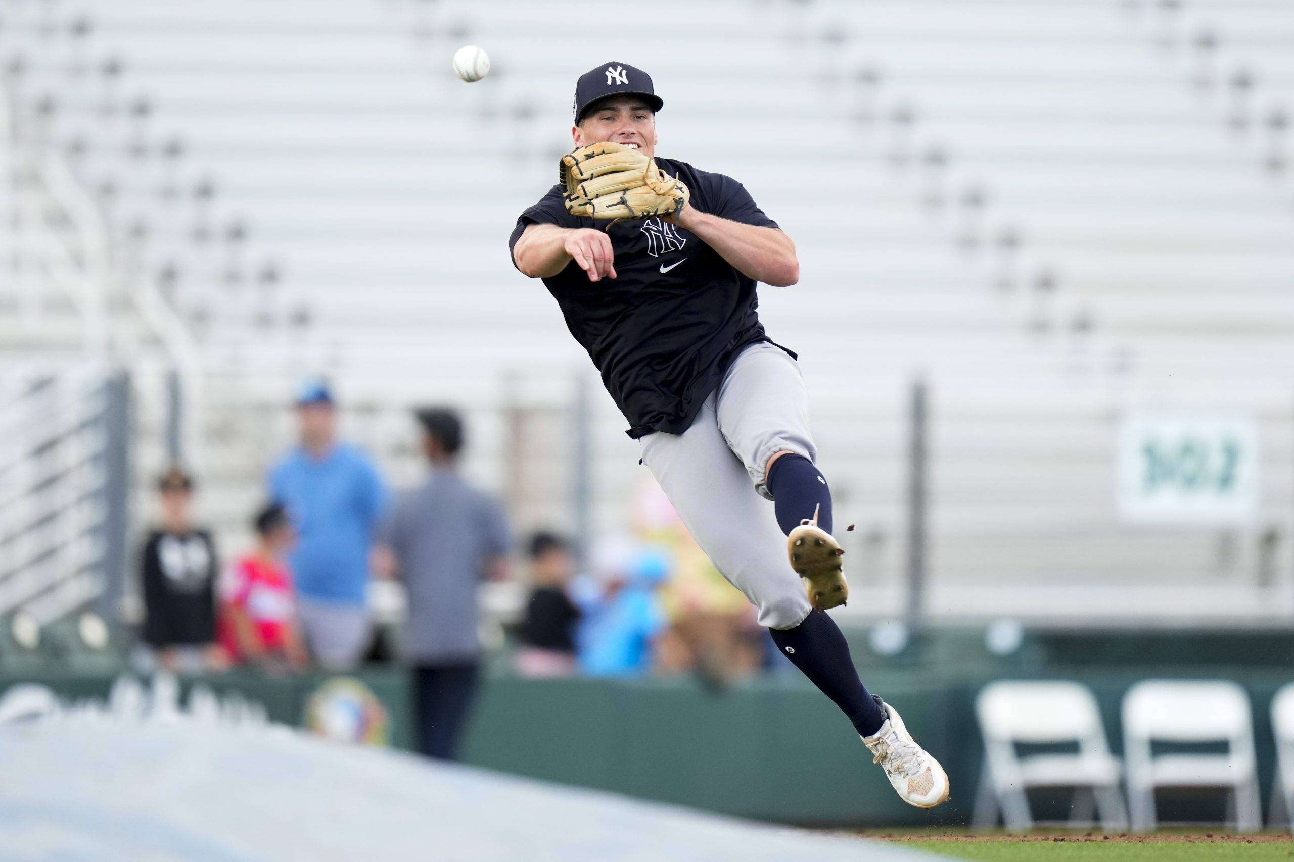 Photo Credit: Caleb Durbin #87 of the New York Yankees warms up prior to a spring training game against the Miami Marlinsat Roger Dean Stadium on March 04, 2024 in Jupiter, Florida. (Photo by Rich Storry/Getty Images)