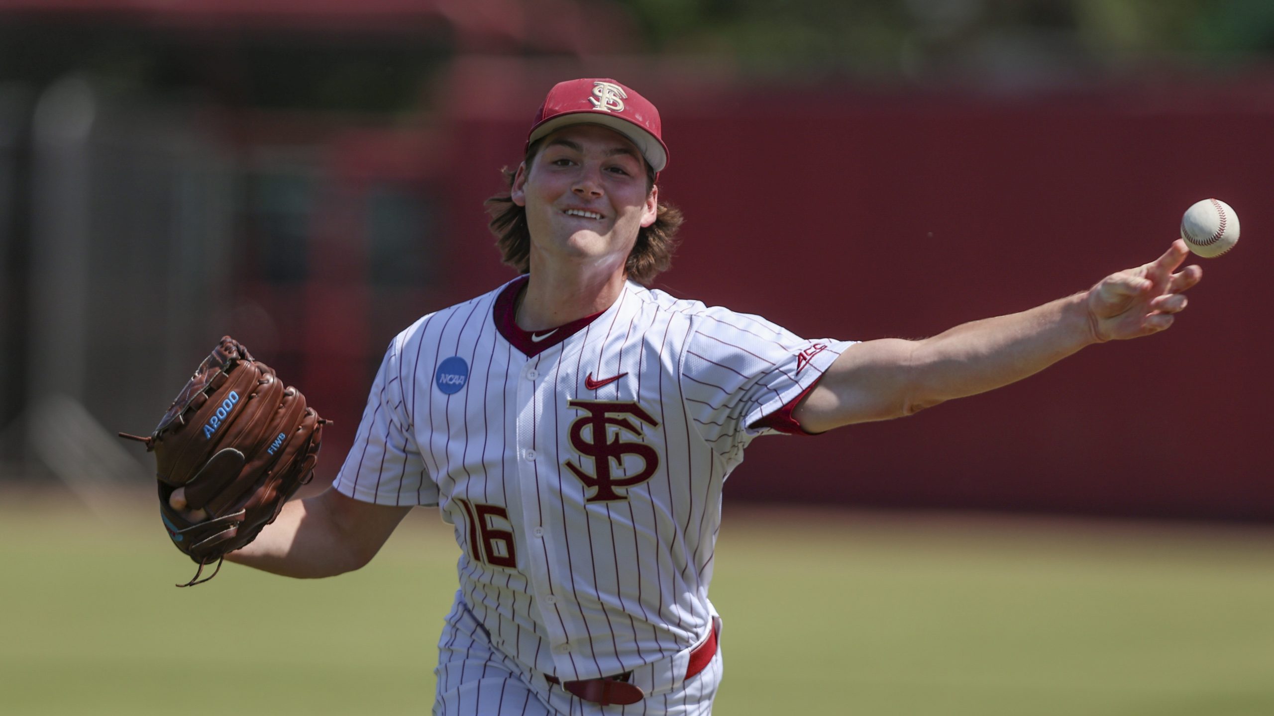Photo: Florida State pitcher Jamie Arnold (16) warms up before an NCAA college regional baseball game against Stetson on Friday, May 31, 2024 in Tallahassee, Fla. (AP Photo/Gary McCullough)