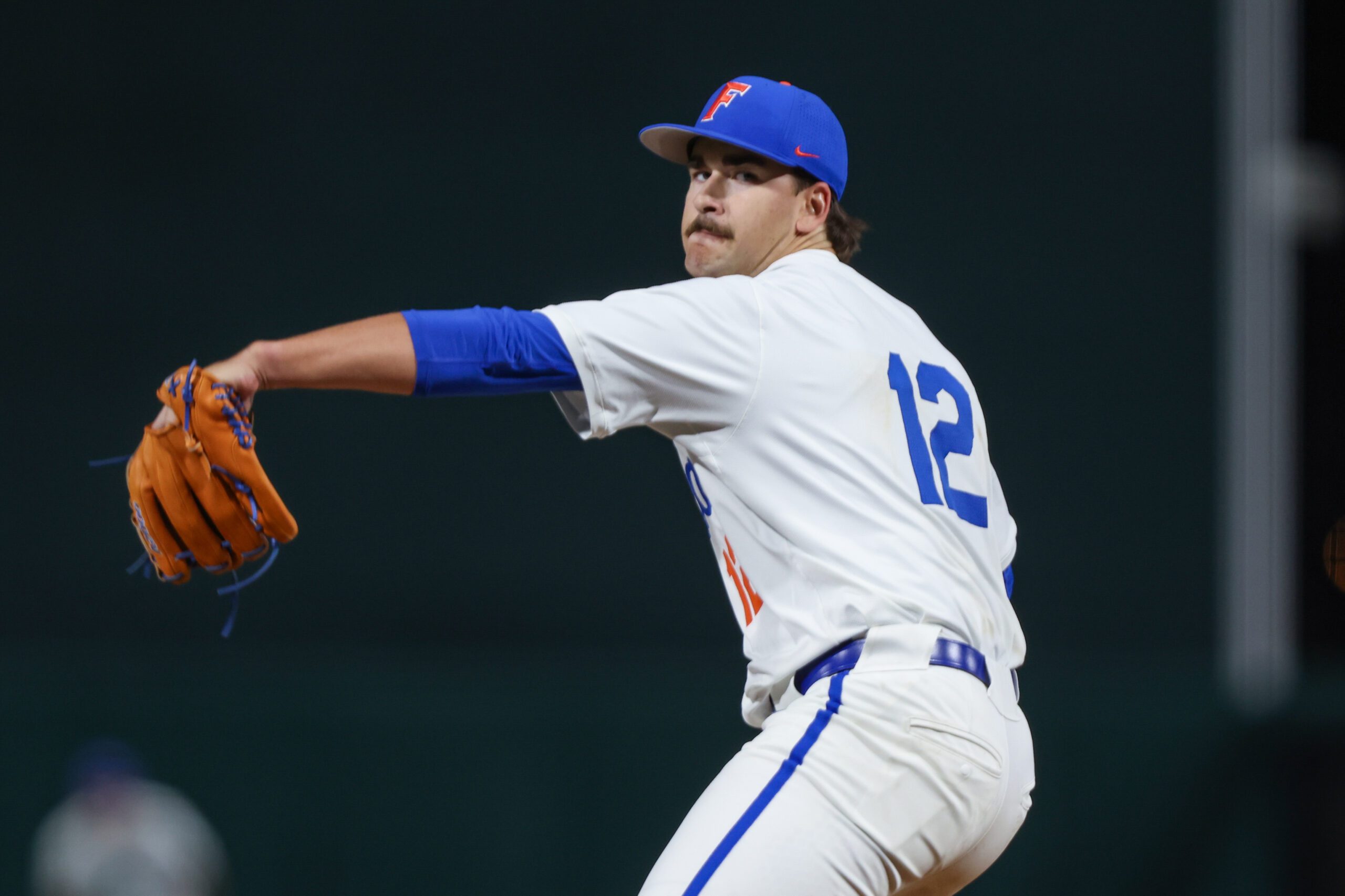 PHOTO: Florida pitcher Liam Peterson (12) throws during an NCAA baseball game against UAB on Friday, Feb. 13, 2026, in Gainesville, Fla. (AP Photo/Gary McCullough)