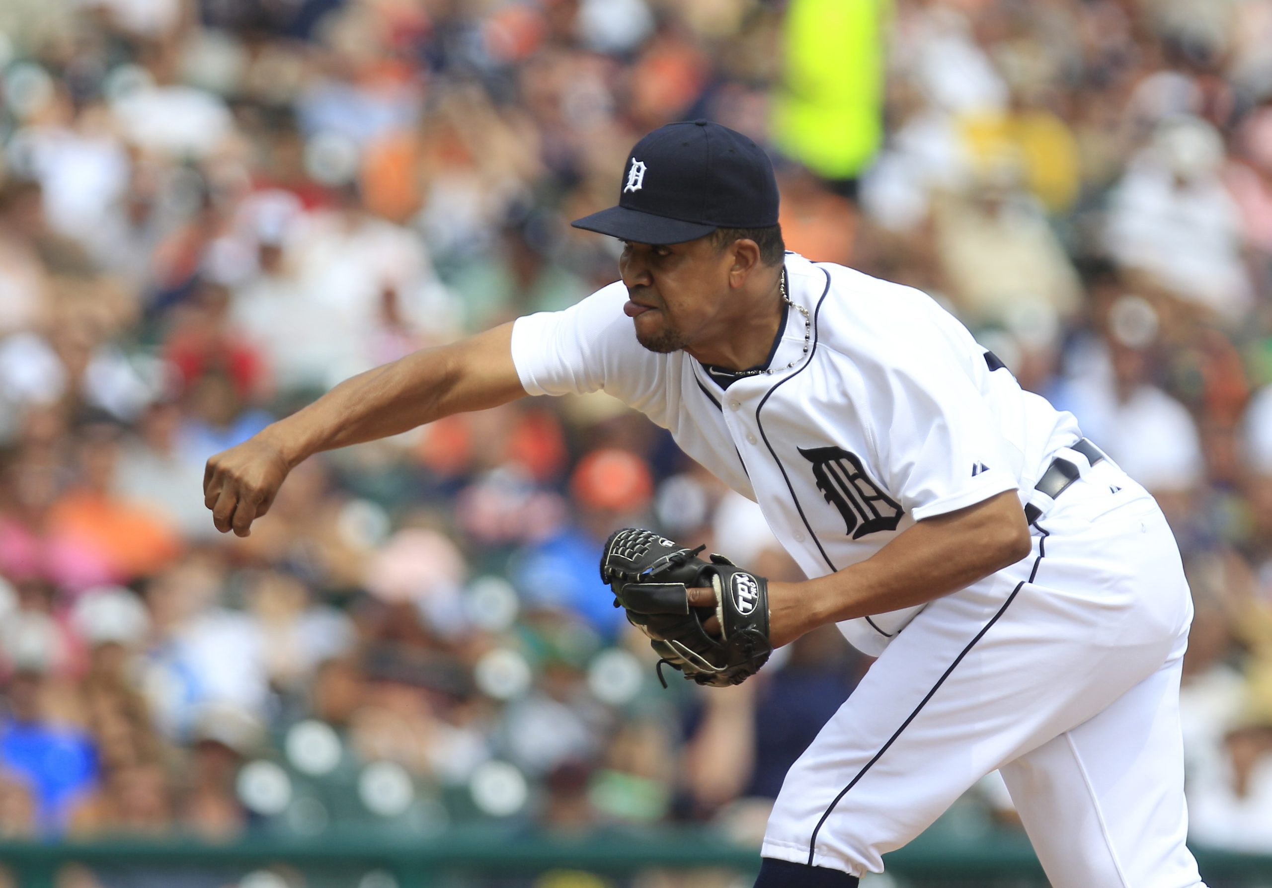 Photo: Detroit Tigers relief pitcher Octavio Dotel throws during the seventh inning of a baseball game against the Chicago White Sox in Detroit, Sunday, July 22, 2012. (AP Photo/Carlos Osorio)