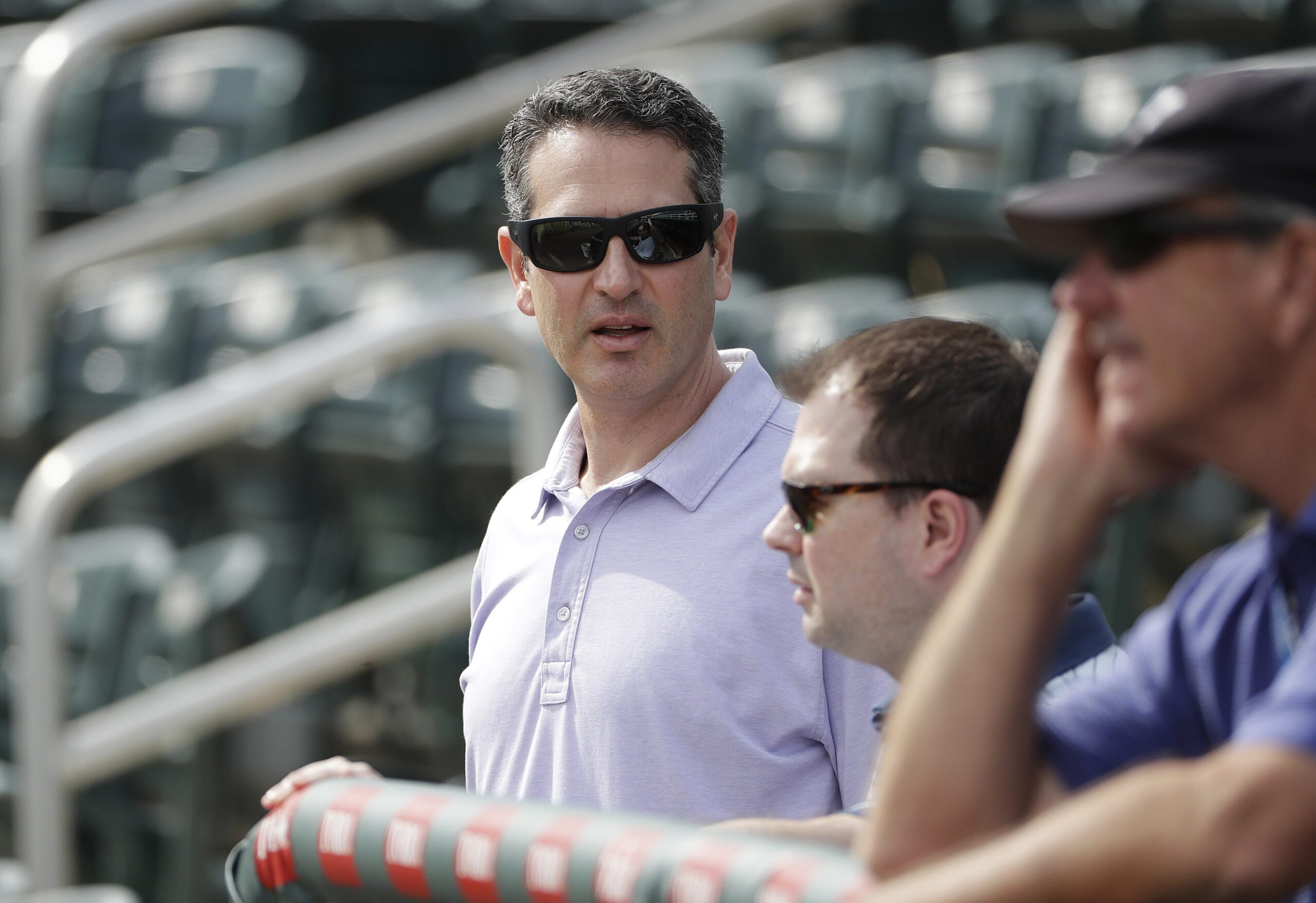 Photo: Minnesota Twins general manager Thad Levine, left, watches a spring training baseball workout in Fort Myers, Fla., Tuesday, Feb. 21, 2017. (AP Photo/David Goldman)