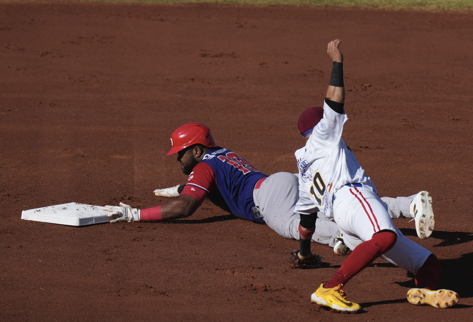 Dominican Republic’s Socrates Brito steals second base during Caribbean Series (AP Photo/Fernando Llano)