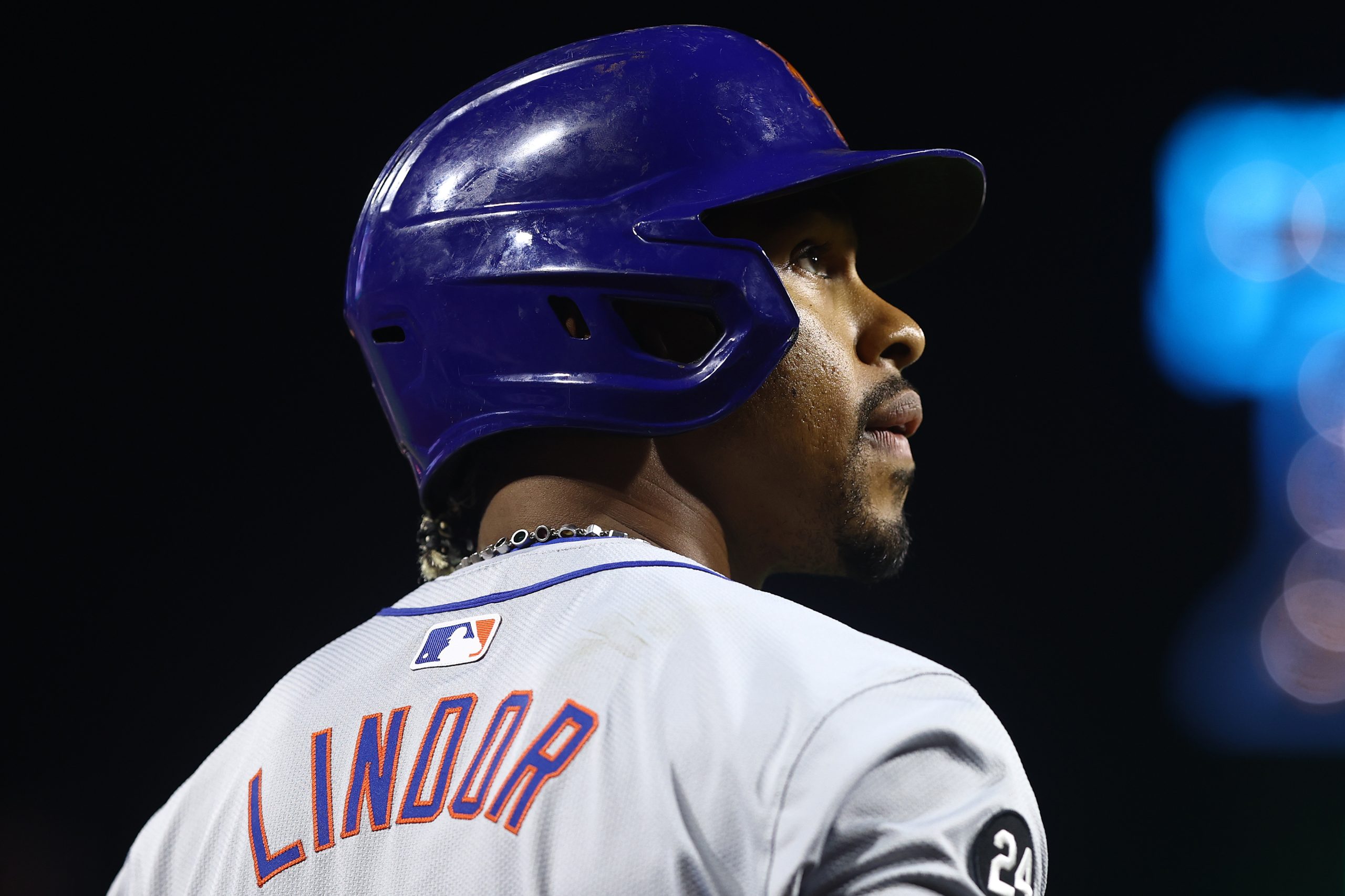 Photo Credit: Francisco Lindor #12 of the New York Mets looks on during the fifth inning against the Philadelphia Phillies at Citizens Bank Park on September 13, 2024 in Philadelphia, Pennsylvania. (Photo by Tim Nwachukwu/Getty Images)