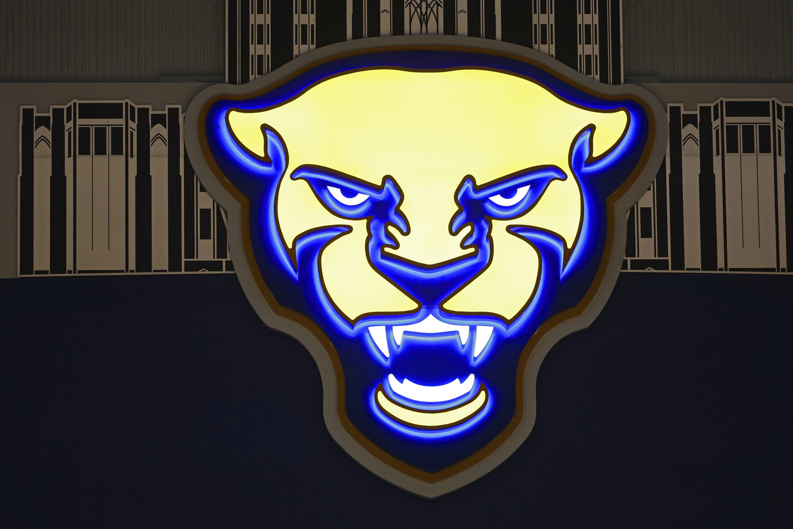 PHOTO: The Pittsburgh Panthers logo is seen in the Peterson Events Center during an NCAA basketball game on Sunday, Dec. 15, 2024, in Pittsburgh. (AP Photo/Gregory Payan)