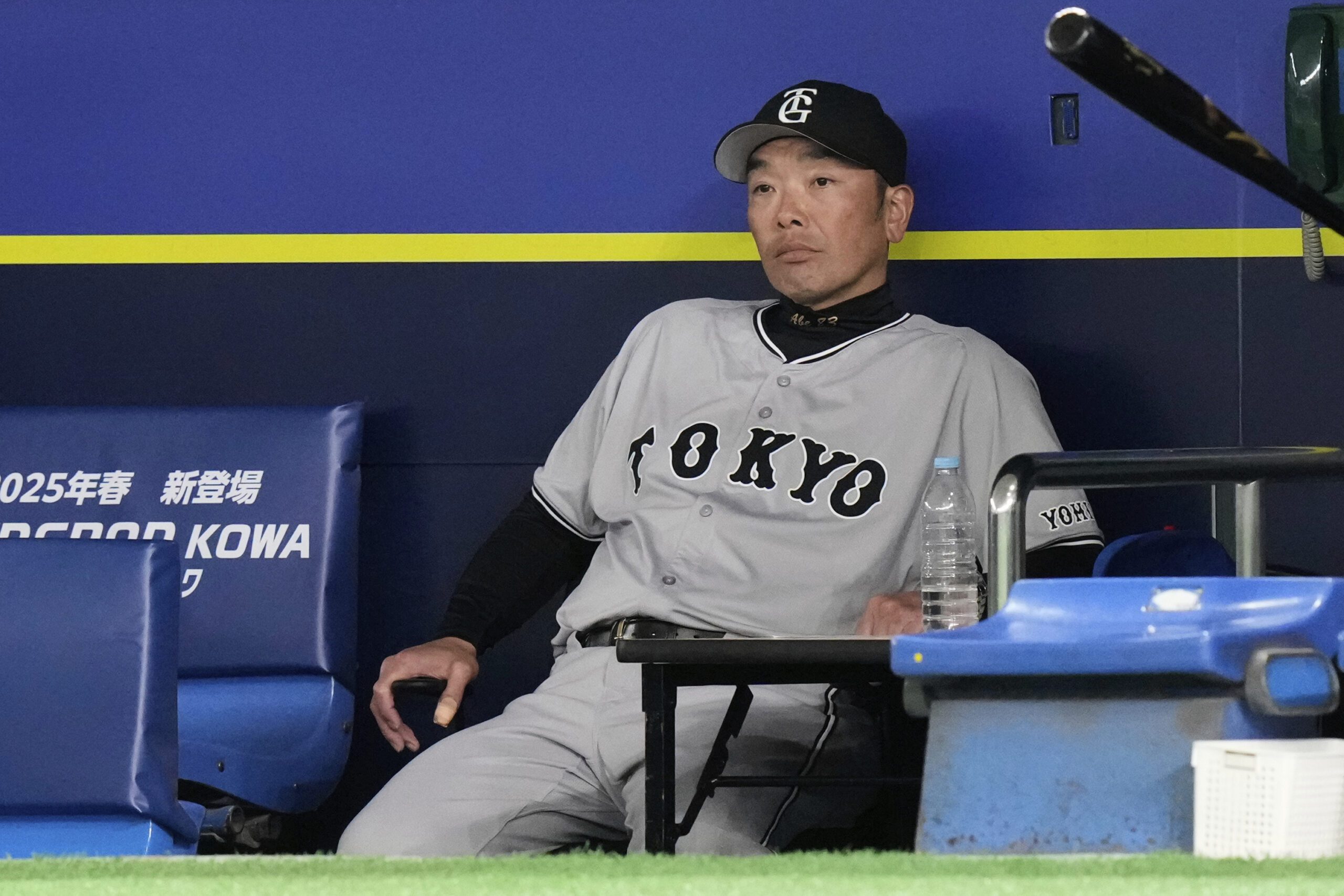 Photo: Yomiuri Giants manager Abe Shinnosuke watches play against the Chicago Cubs in the ninth inning of an MLB Japan Series exhibition baseball game in Tokyo, Japan, Sunday, March 16, 2025. (AP Photo/Eugene Hoshiko)