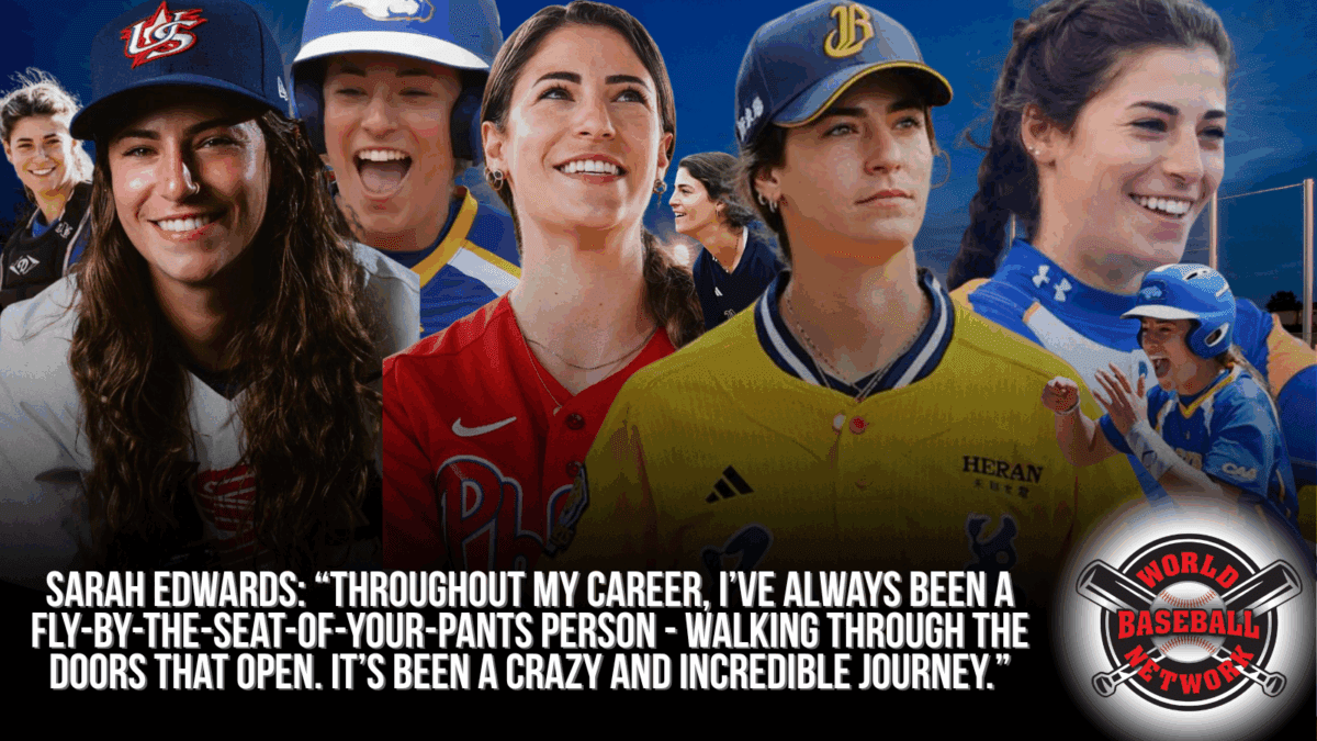 At just 28 years old, Sarah Edwards has already played or coached in 11 countries and traveled to 21 – a staggering accomplishment for anyone, let alone a female coach breaking into professional men’s baseball.