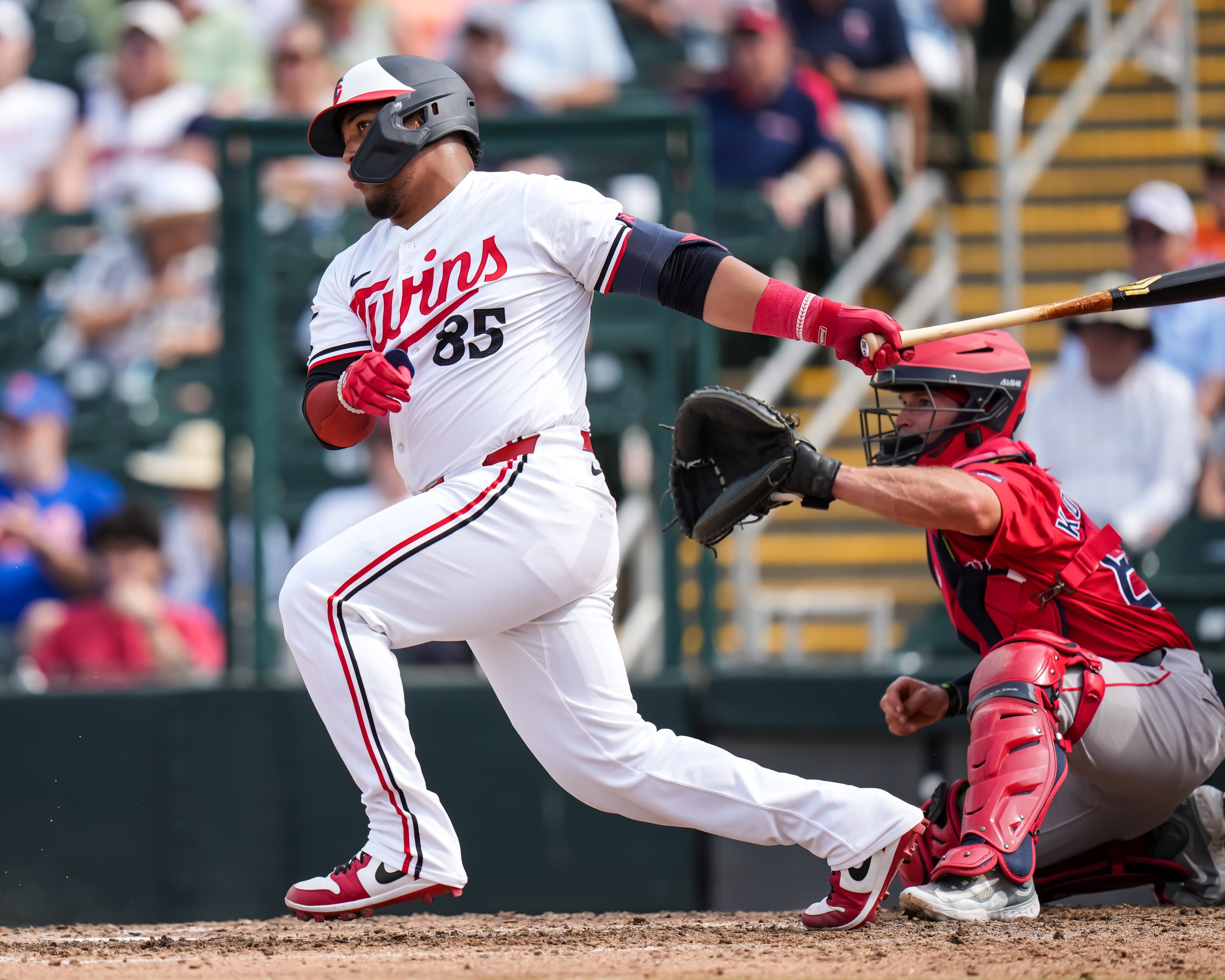 Photo Credit: Jair Camargo #85 of the Minnesota Twins bats during a spring training game against the Boston Red Sox on March 1, 2024 at the Lee County Sports Complex in Fort Myers, Florida. (Photo by Brace Hemmelgarn/Minnesota Twins/Getty Images)