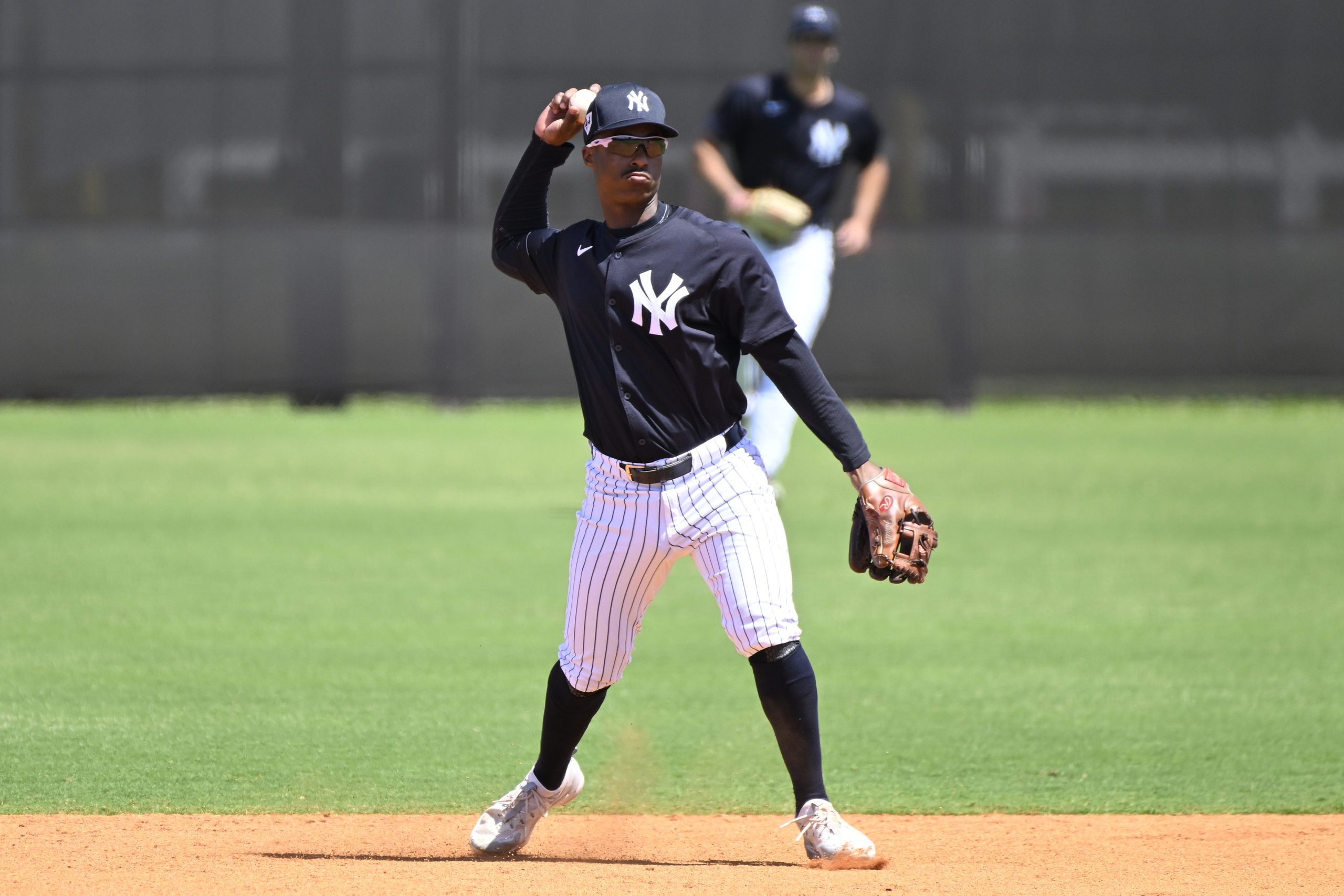 Photo Credit: Jeter Downs #53 of the New York Yankees throws to first base during a minor league spring training game against the Toronto Blue Jays at the Himes Complex on March 19, 2024 in Tampa, Florida. (Photo by Diamond Images via Getty Images)
