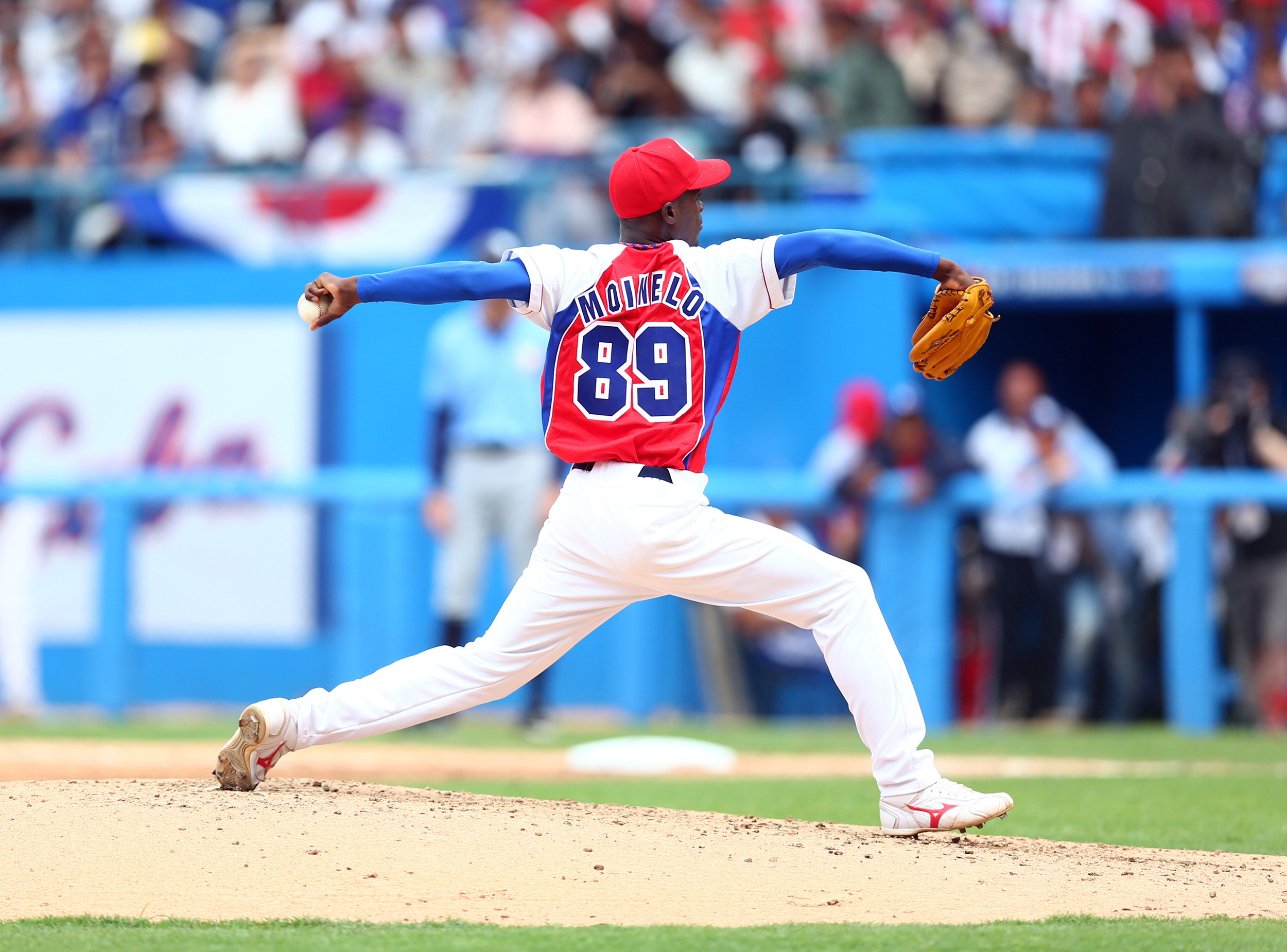 Photo Credit: Livan Moinelo #89 of the Cuba National team pitches during the game against the Tampa Bay Rays at Estadio Latinoamericano on Tuesday, March 22, 2016 in Havana, Cuba. (Photo by Rob Tringali/MLB via Getty Images)