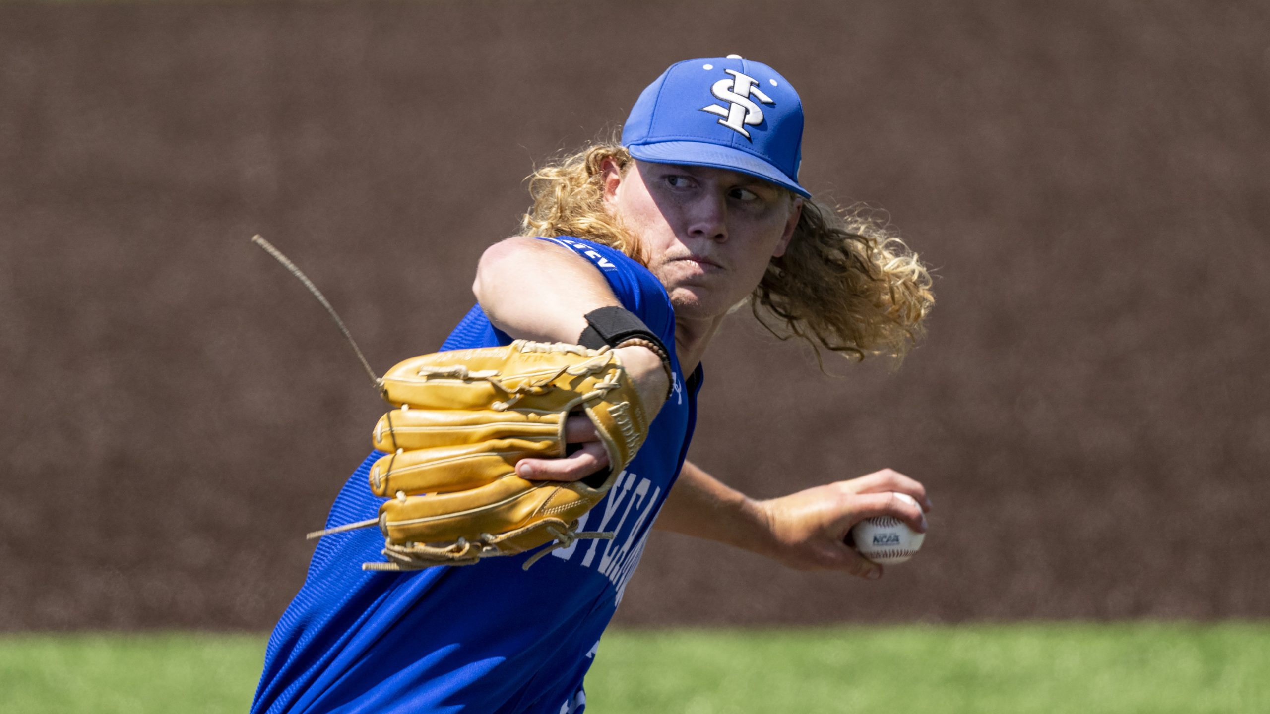 Photo: Indiana State pitcher Jared Spencer (22) delivers a pitch during an NCAA baseball game on Friday, June 2, 2023, in Terre Haute, Ind. Spencer has transferred to Texas, but will miss the rest of the 2025 season due to a shoulder injury. (AP Photo/Doug McSchooler)