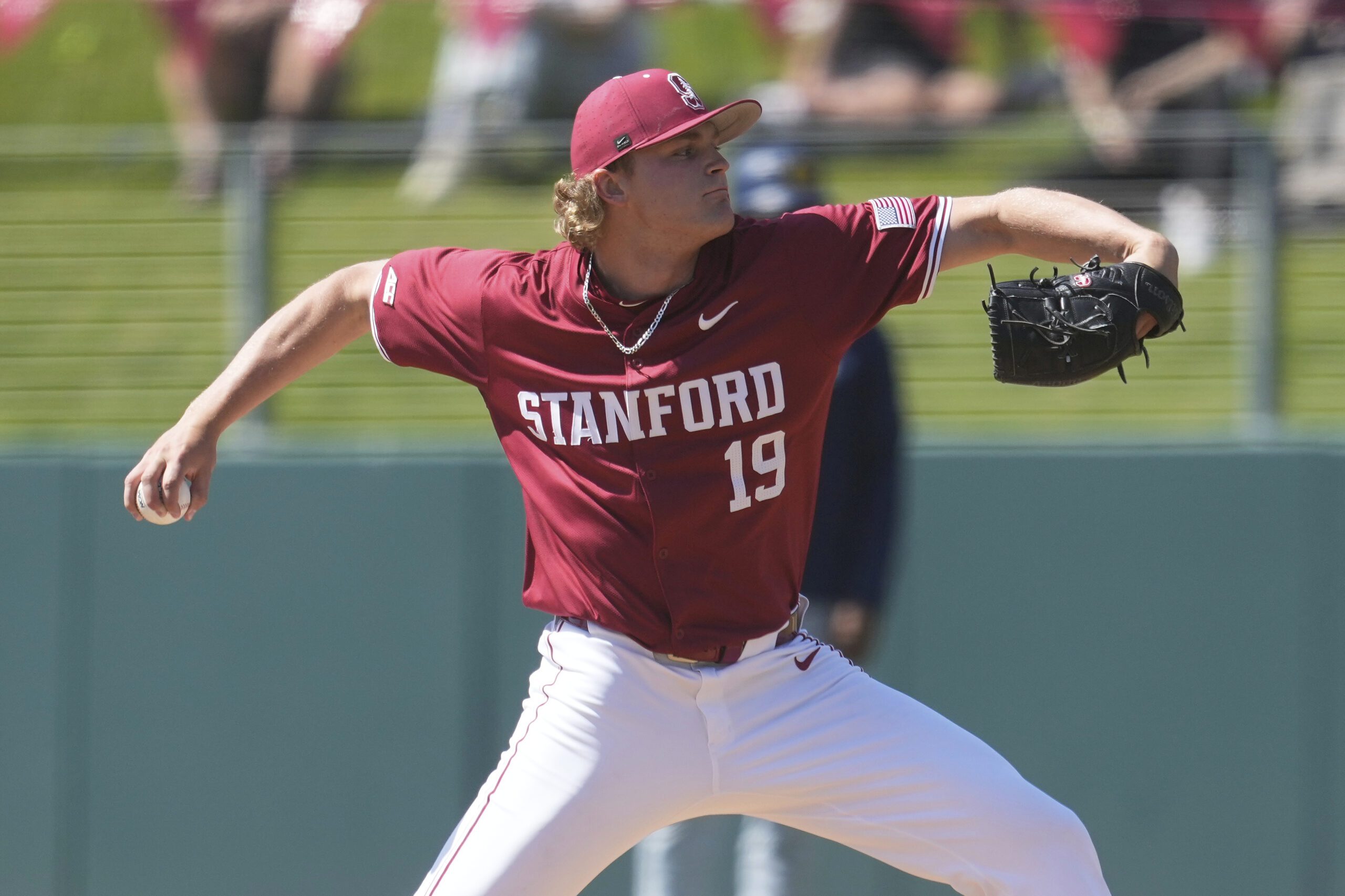 Photo: Stanford pitcher Joey Volchko against California during an NCAA college baseball game in Stanford, Calif., Sunday, March 23, 2025. (AP Photo/Jeff Chiu)