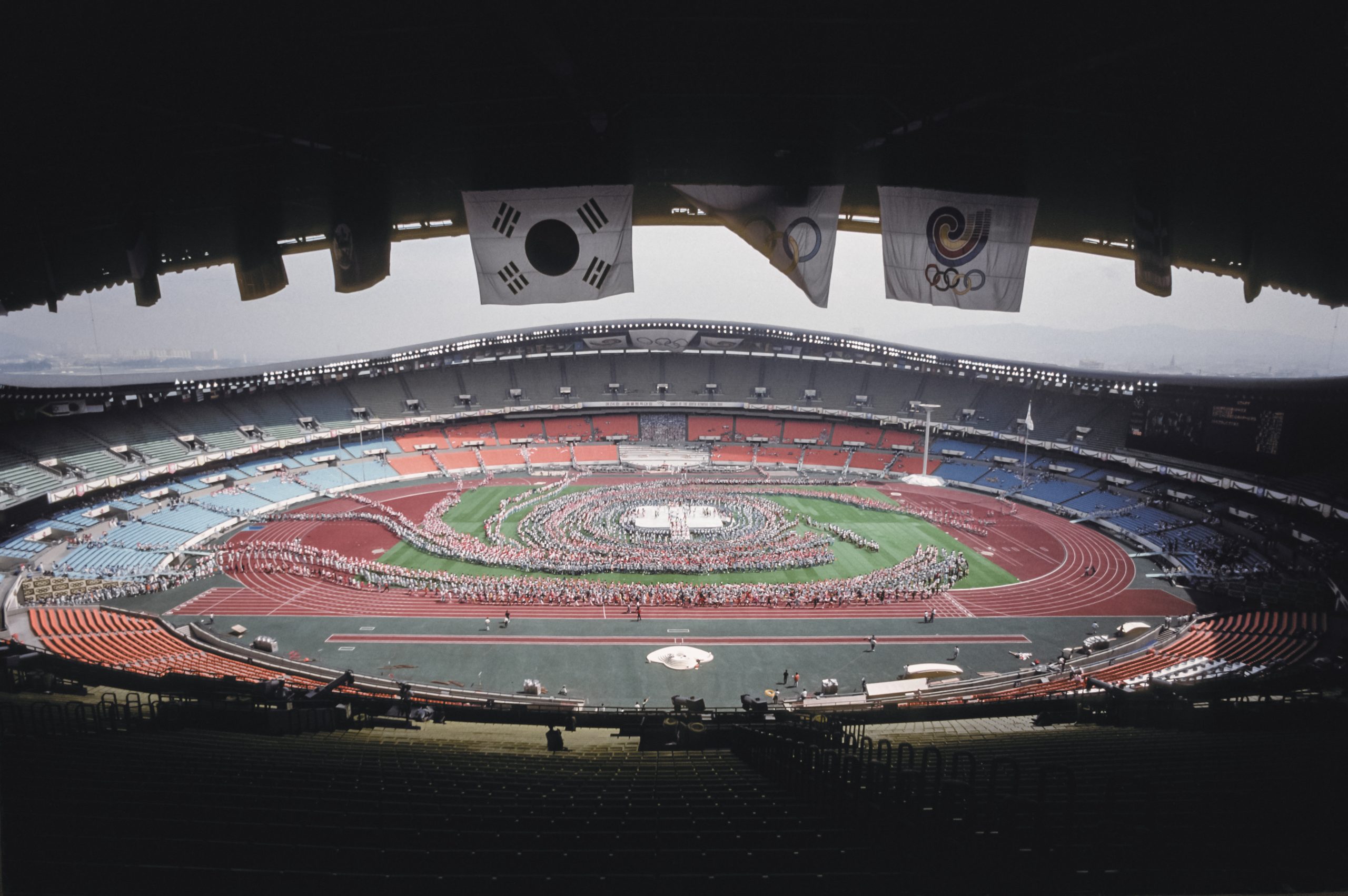 Photo Credit: A general view of performers practicing for the Opening Ceremony of the 1988 Olympic Games to be held on September 17, 1988 at the Jamsil Olympic Stadium in Seoul, South Korea. (Photo by David Madison/Getty Images)